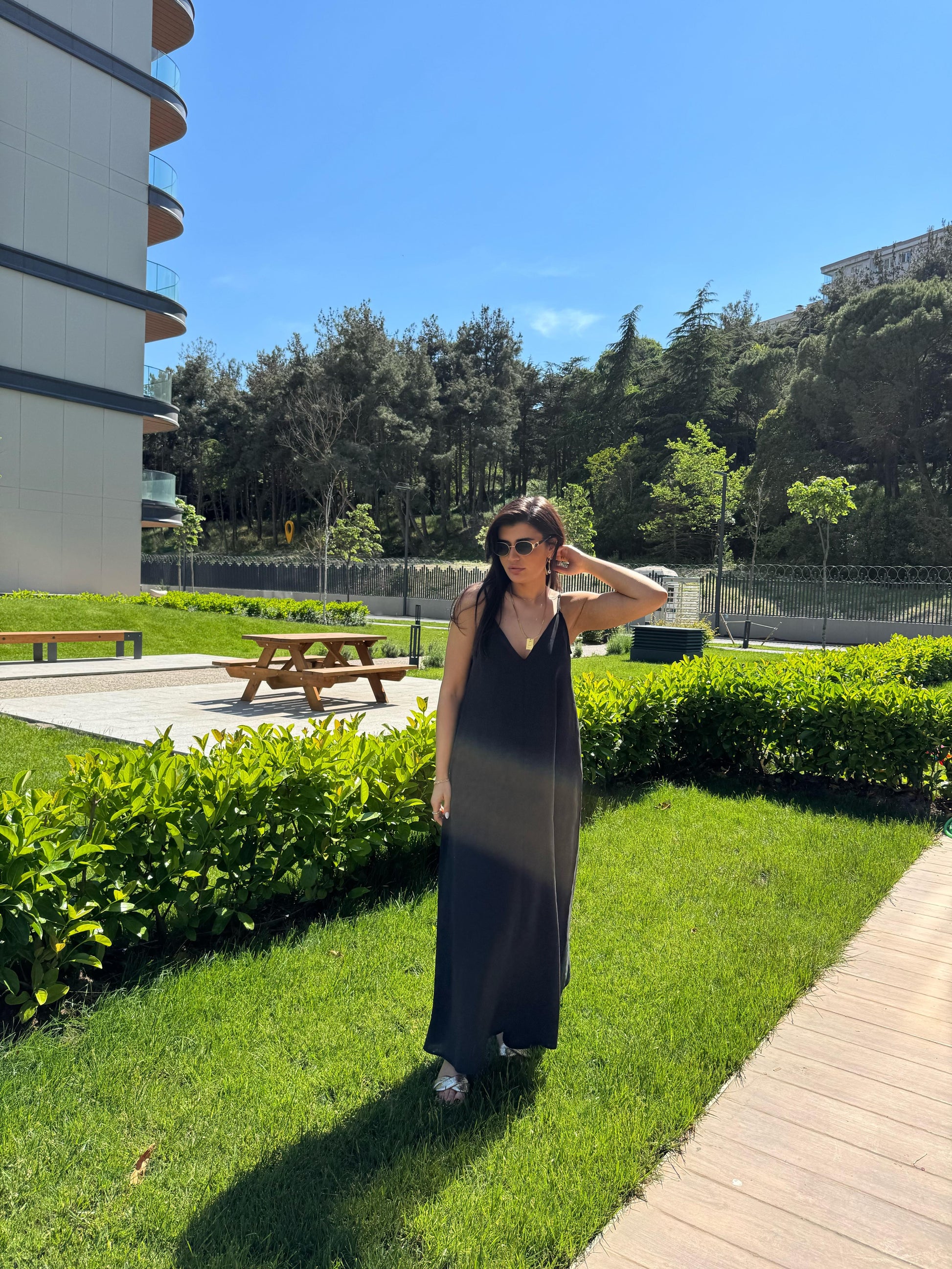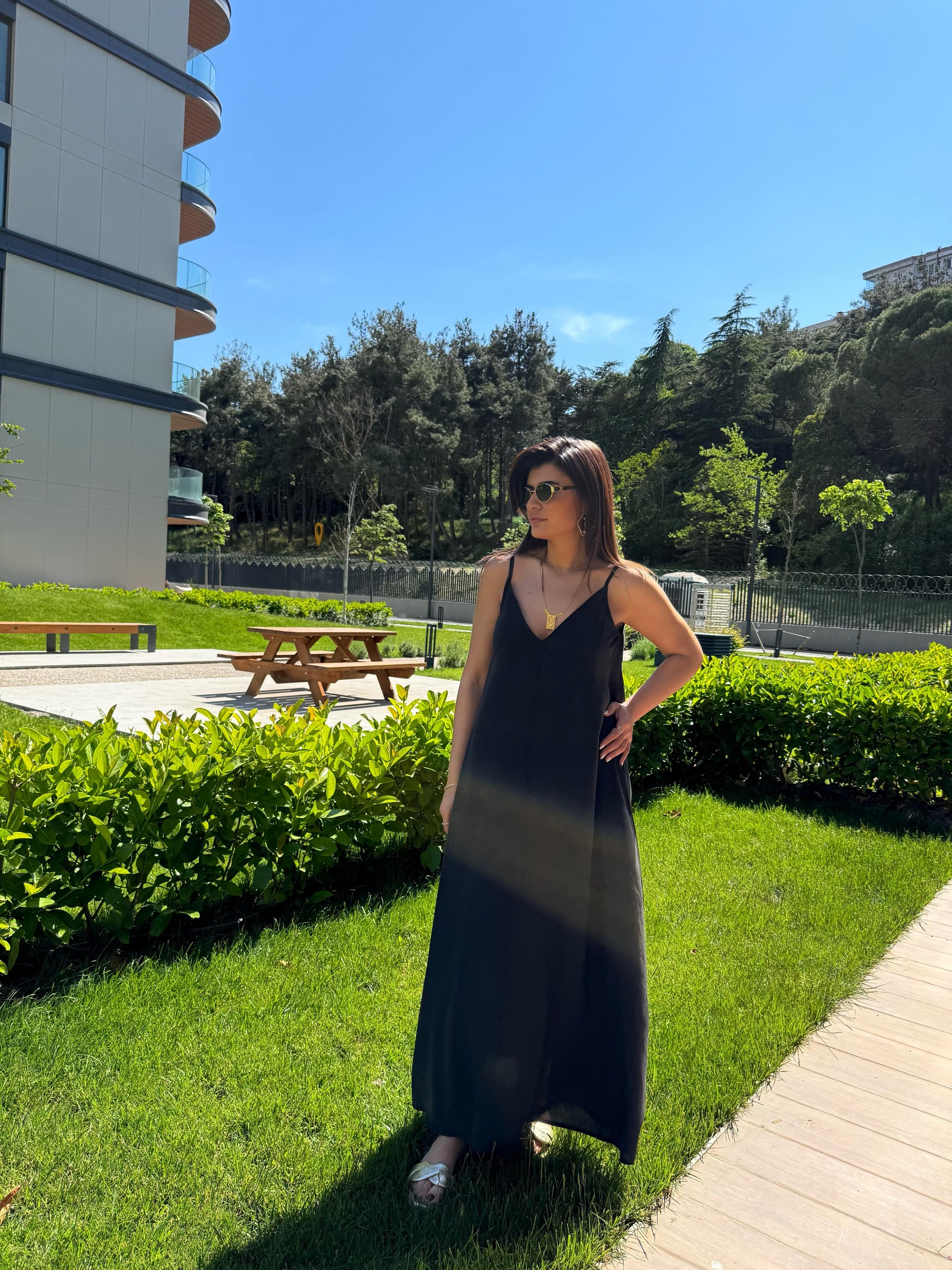 Ayarlanabilir Askılı Elbise - Tencel Kumaş | Siyah