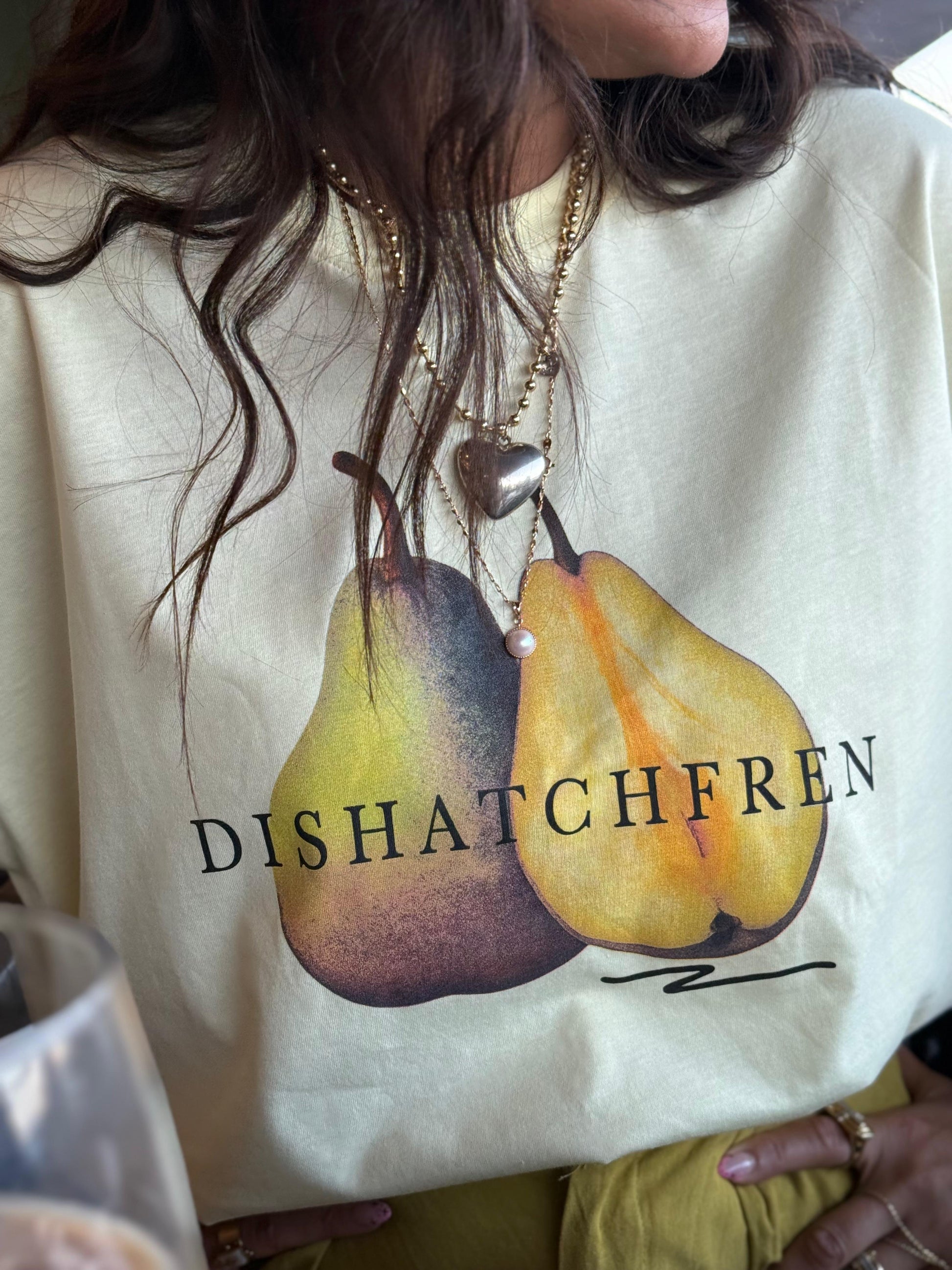 Yumuşacık dokusu, oversize kalıbı ve canlı armut baskısıyla her kombine tatlı bir dokunuş yap. Hem günlük hem de sokak stiline uyumlu bu parça, gardırobunun favorisi olacak.