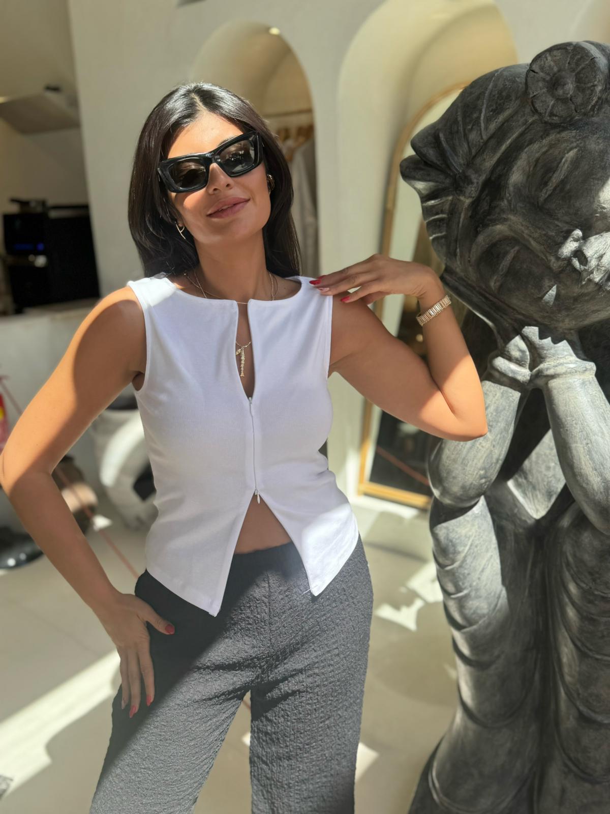 🤍 Detaylarda Güç Var: Beyaz Fermuar Detaylı Bluz