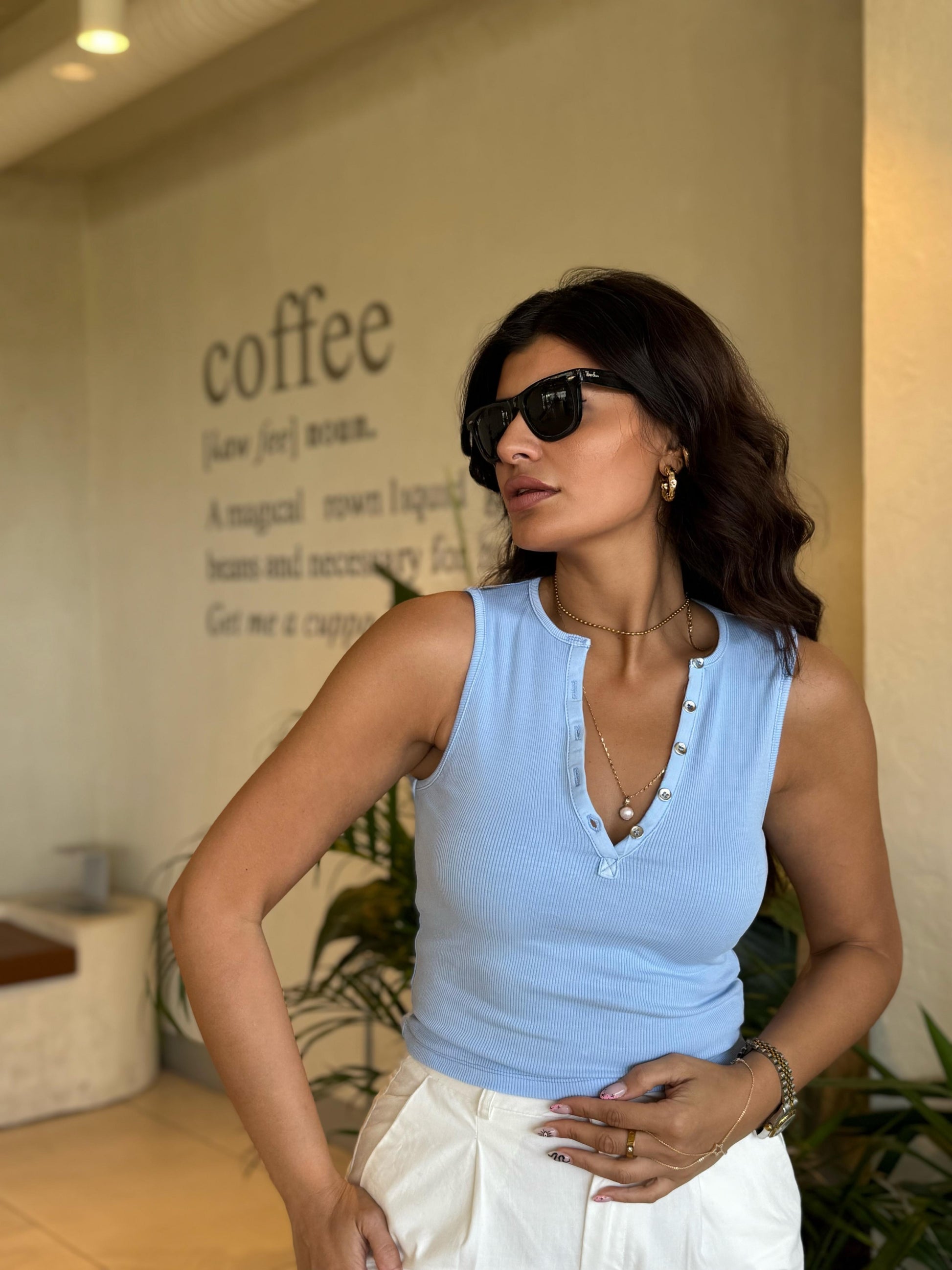 Turkuaz rengiyle yaz enerjisini yansıtan bu bluz, stilinize sofistike bir hava katacak.