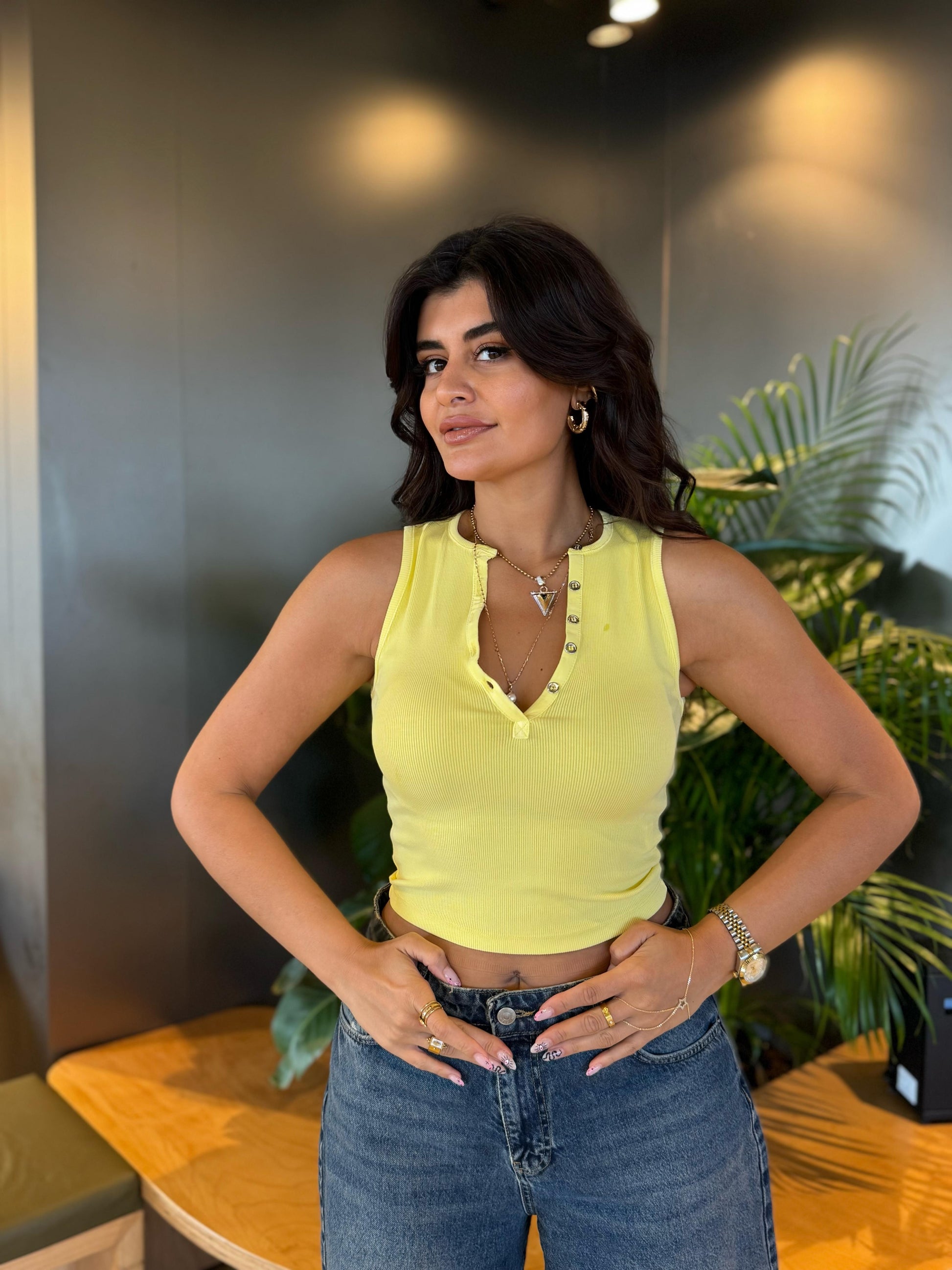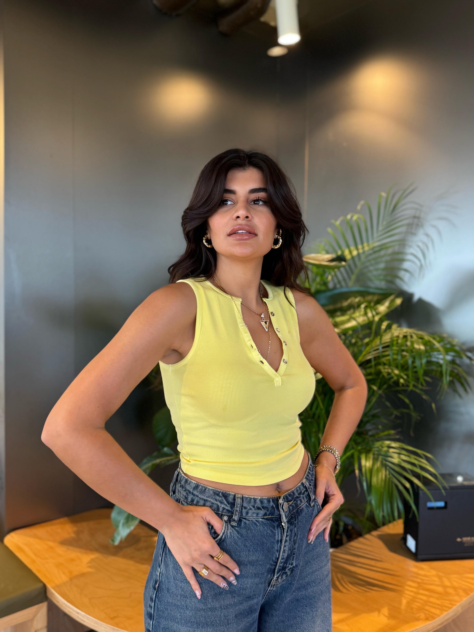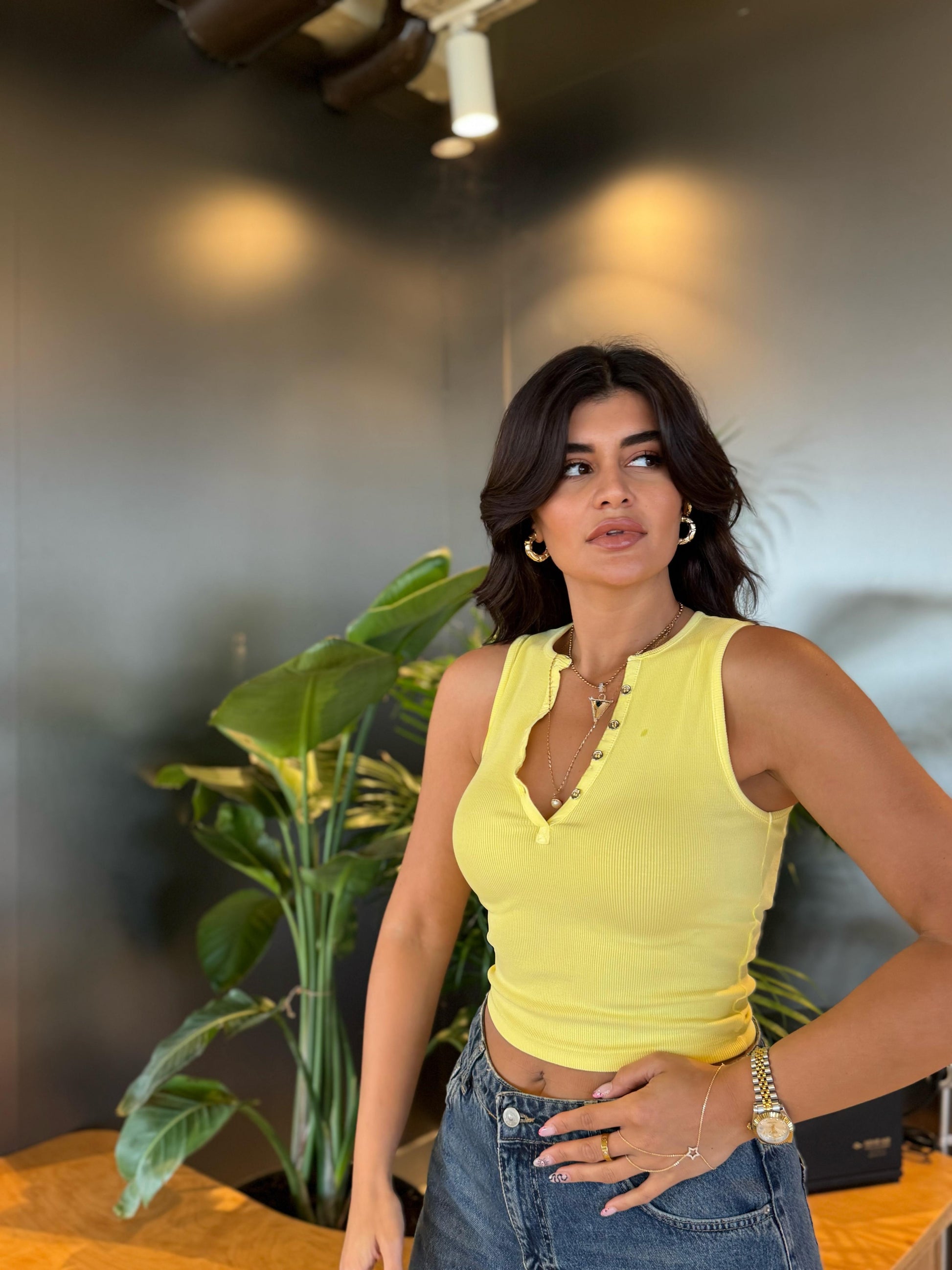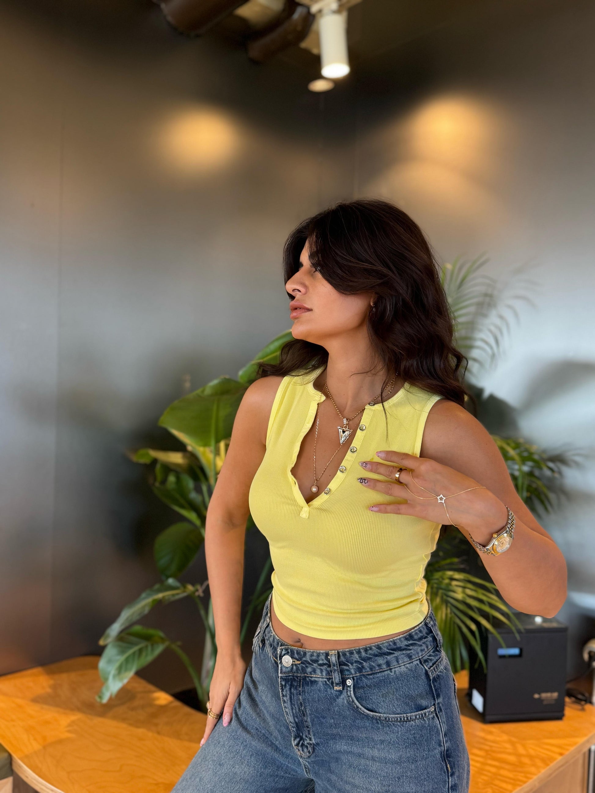 Enerjik sarı tonu ve zarif kalıbıyla dikkat çeken bu bluz, yaz günlerinde dolabınızın en sevilen parçası olmaya aday.