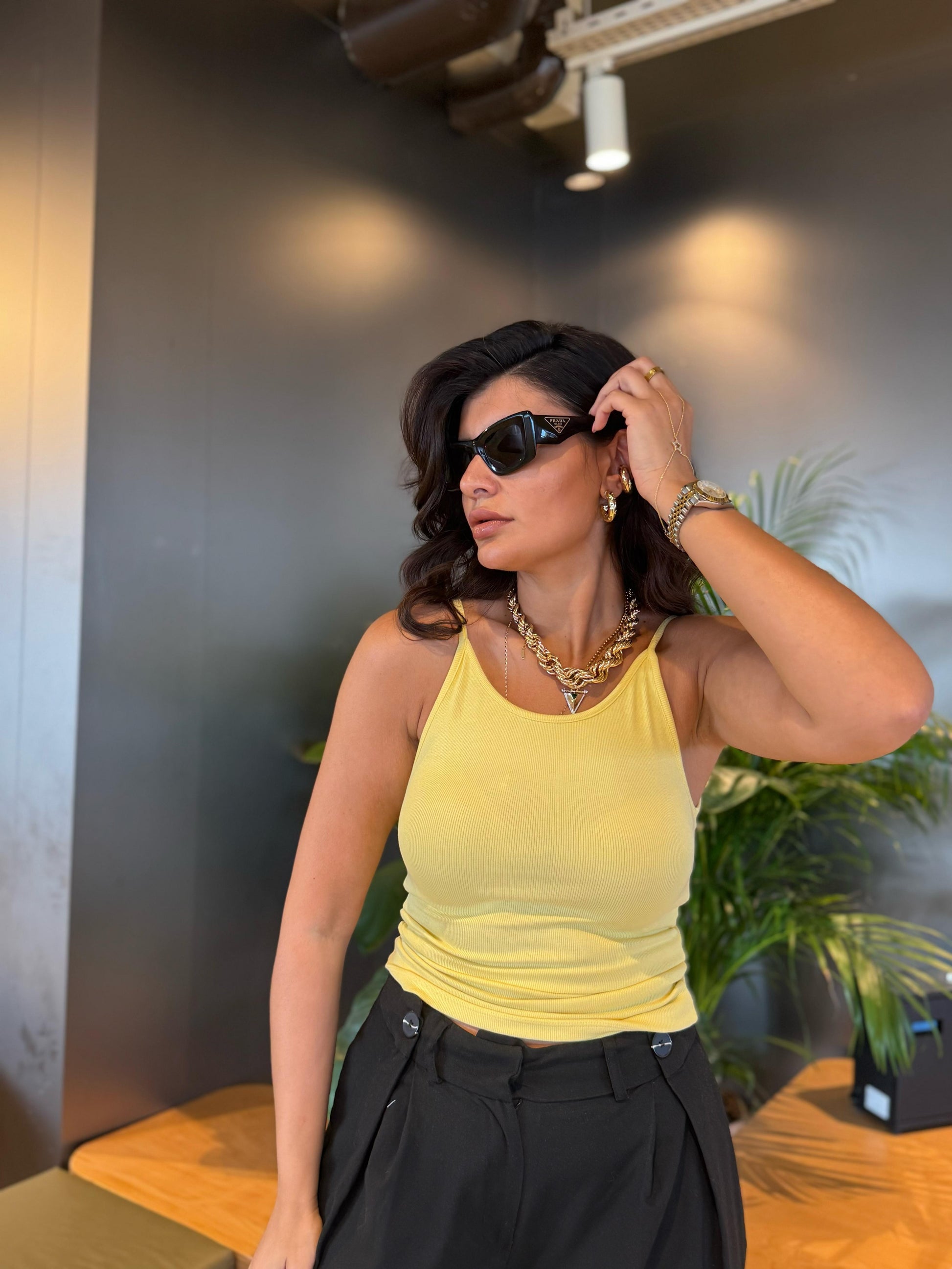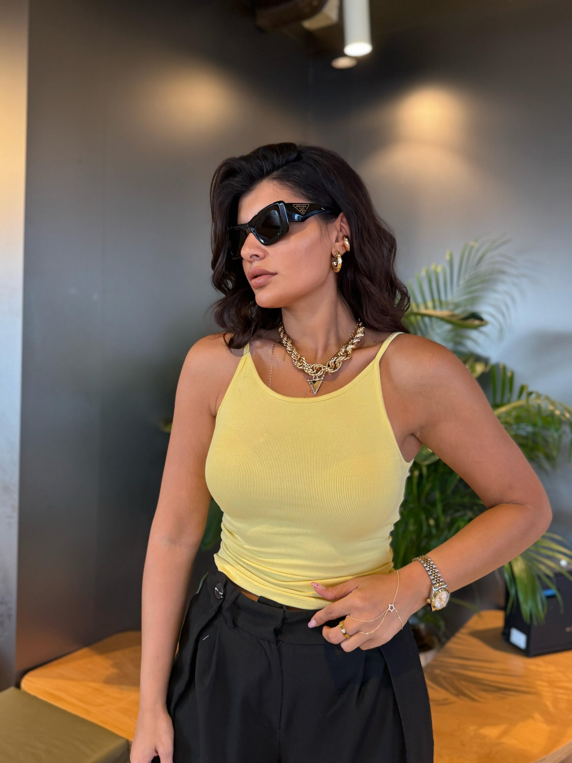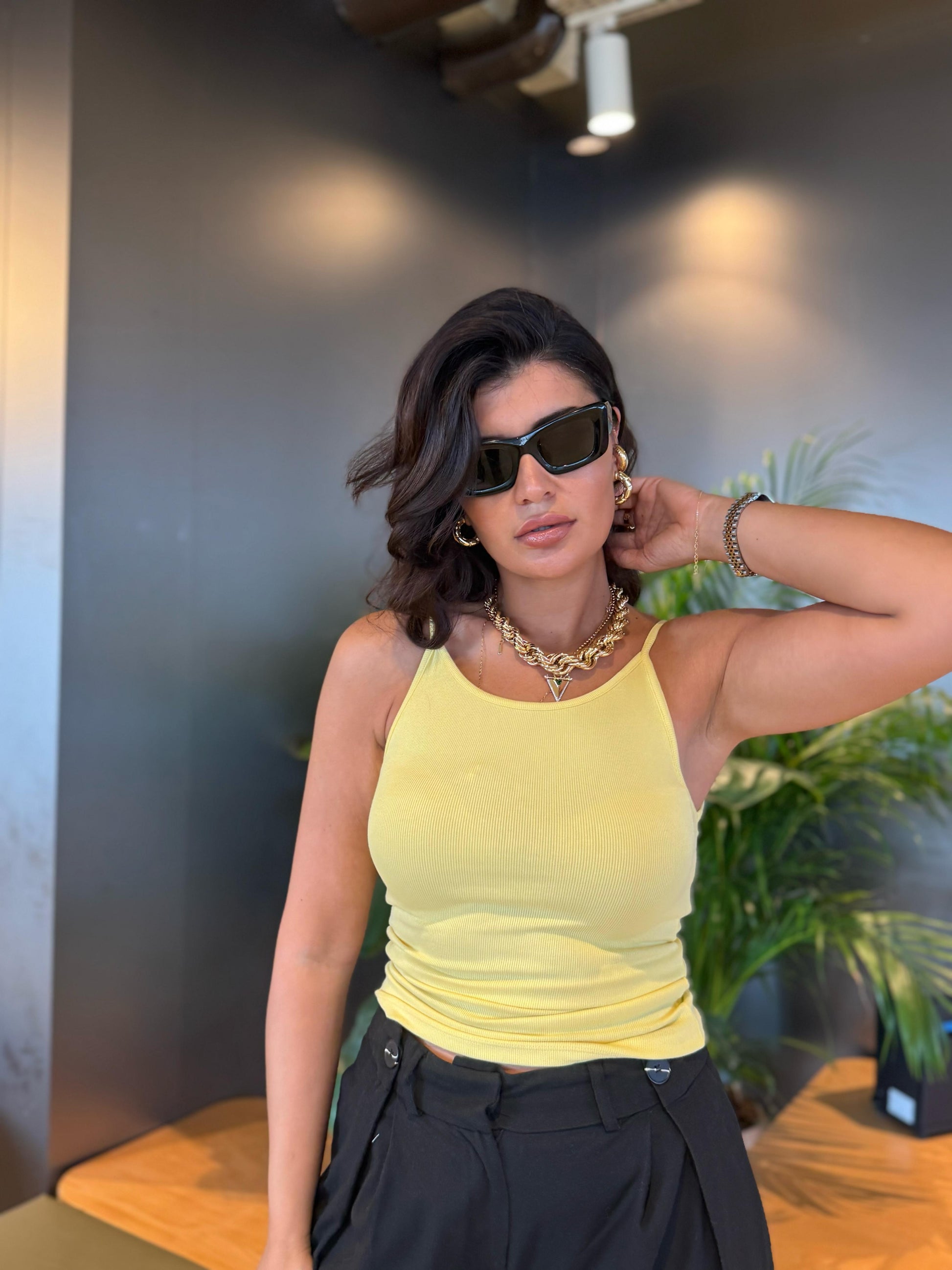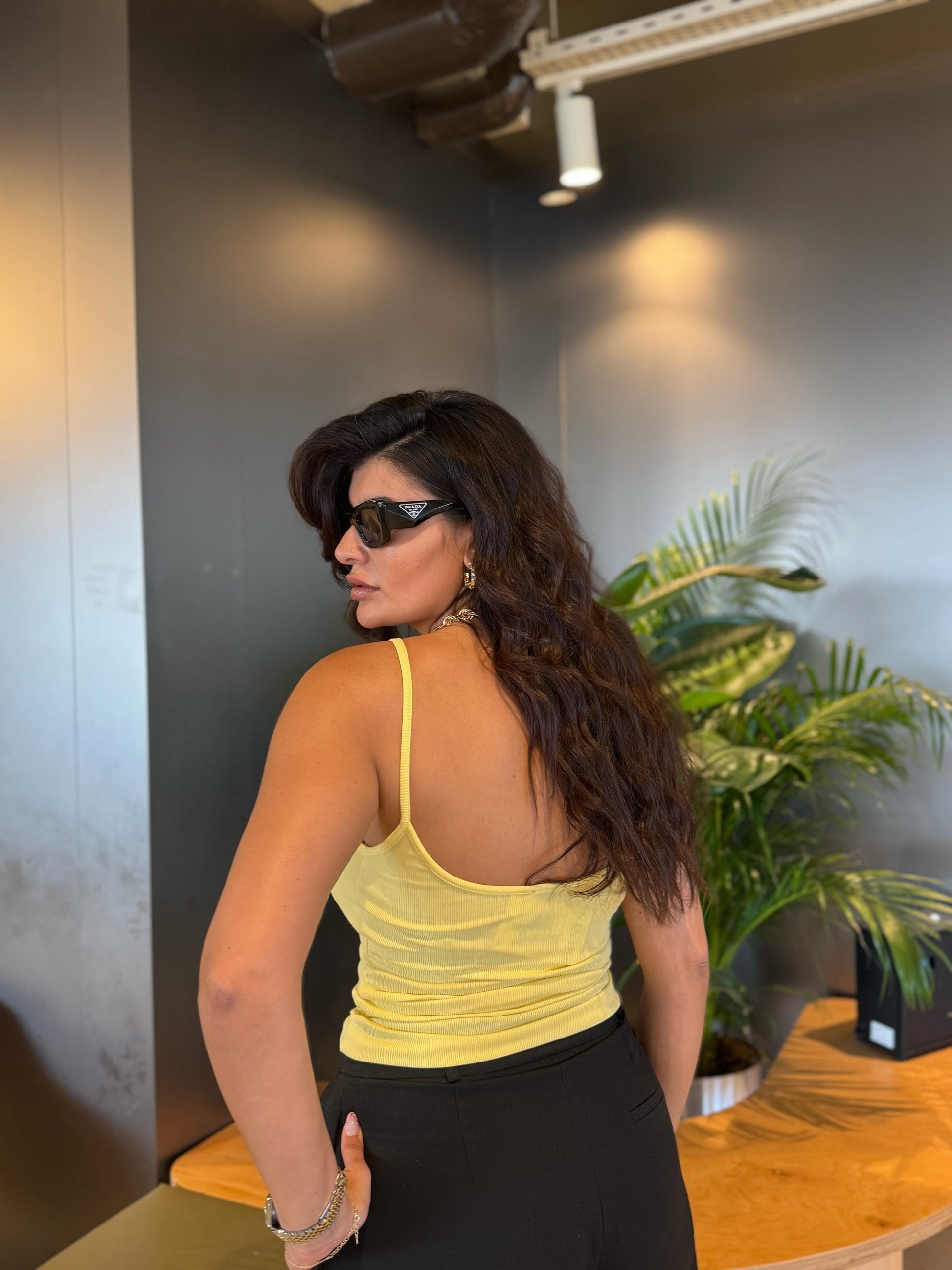 Canlı sarı tonu ve fitilli dokusuyla enerjisini yansıtan kadınların tercihi. Crop kesimi ile vücut hatlarını zarifçe vurgular.