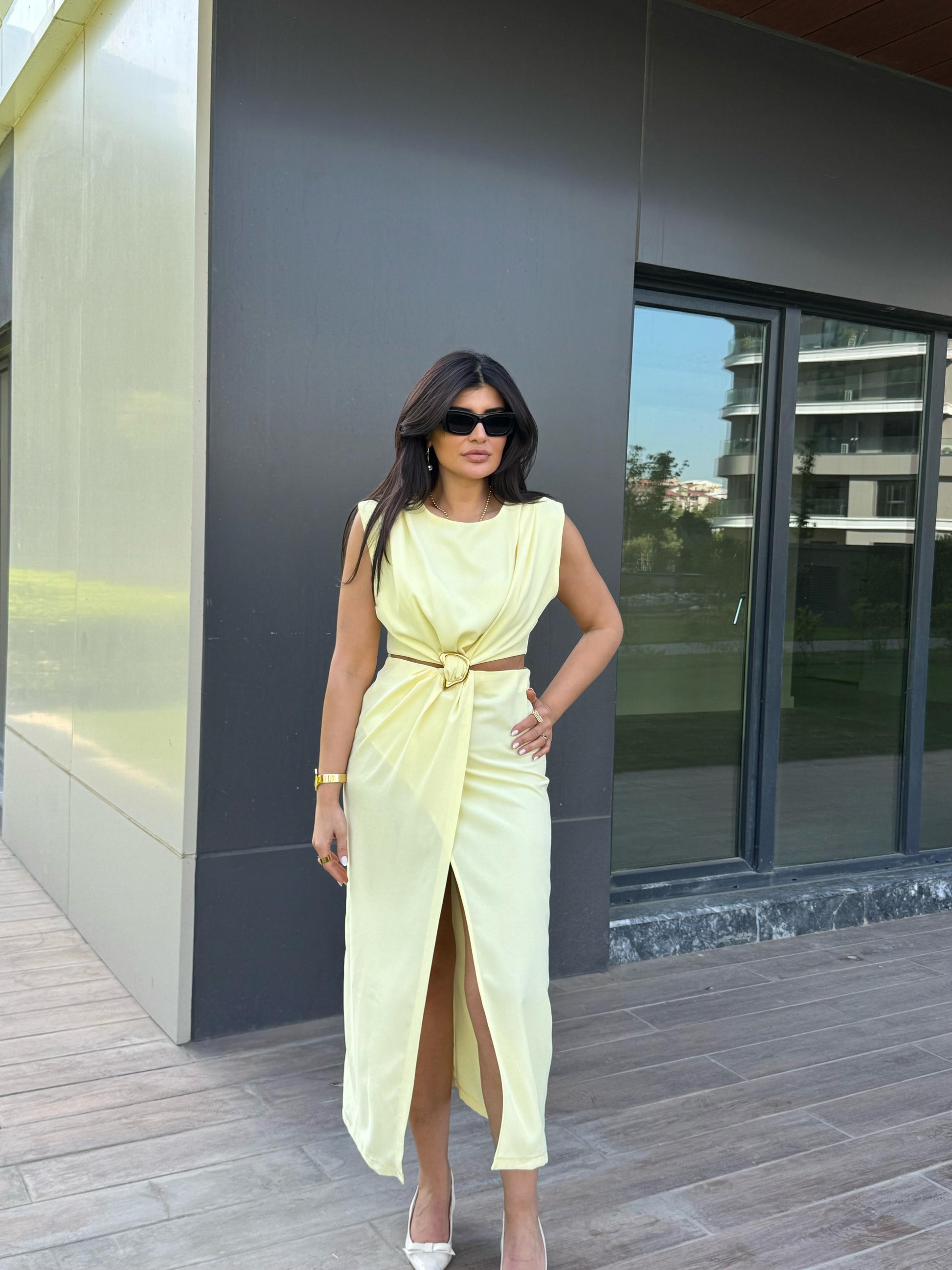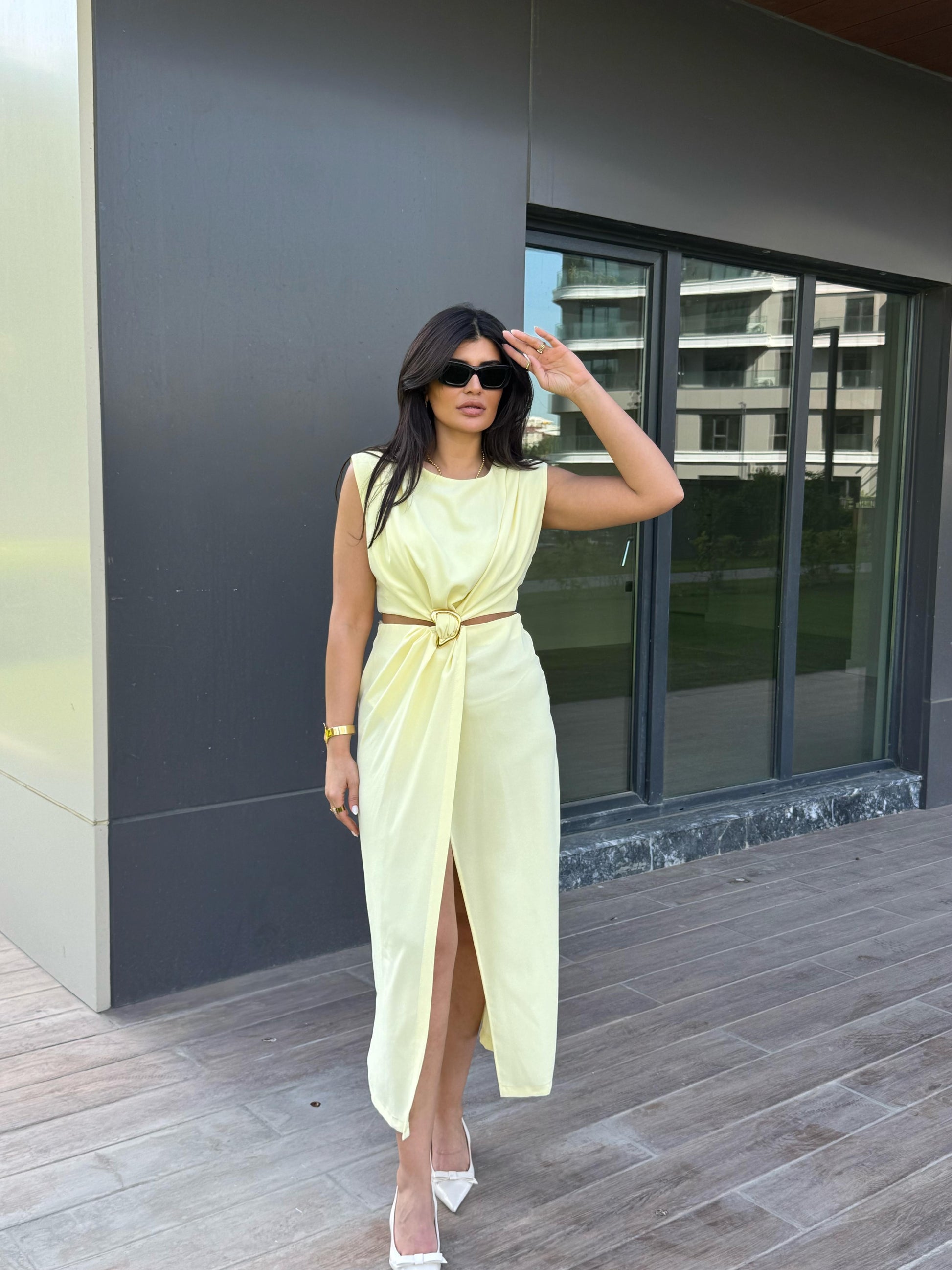 Gold Toka Pencere Detaylı Elbise | Sarı