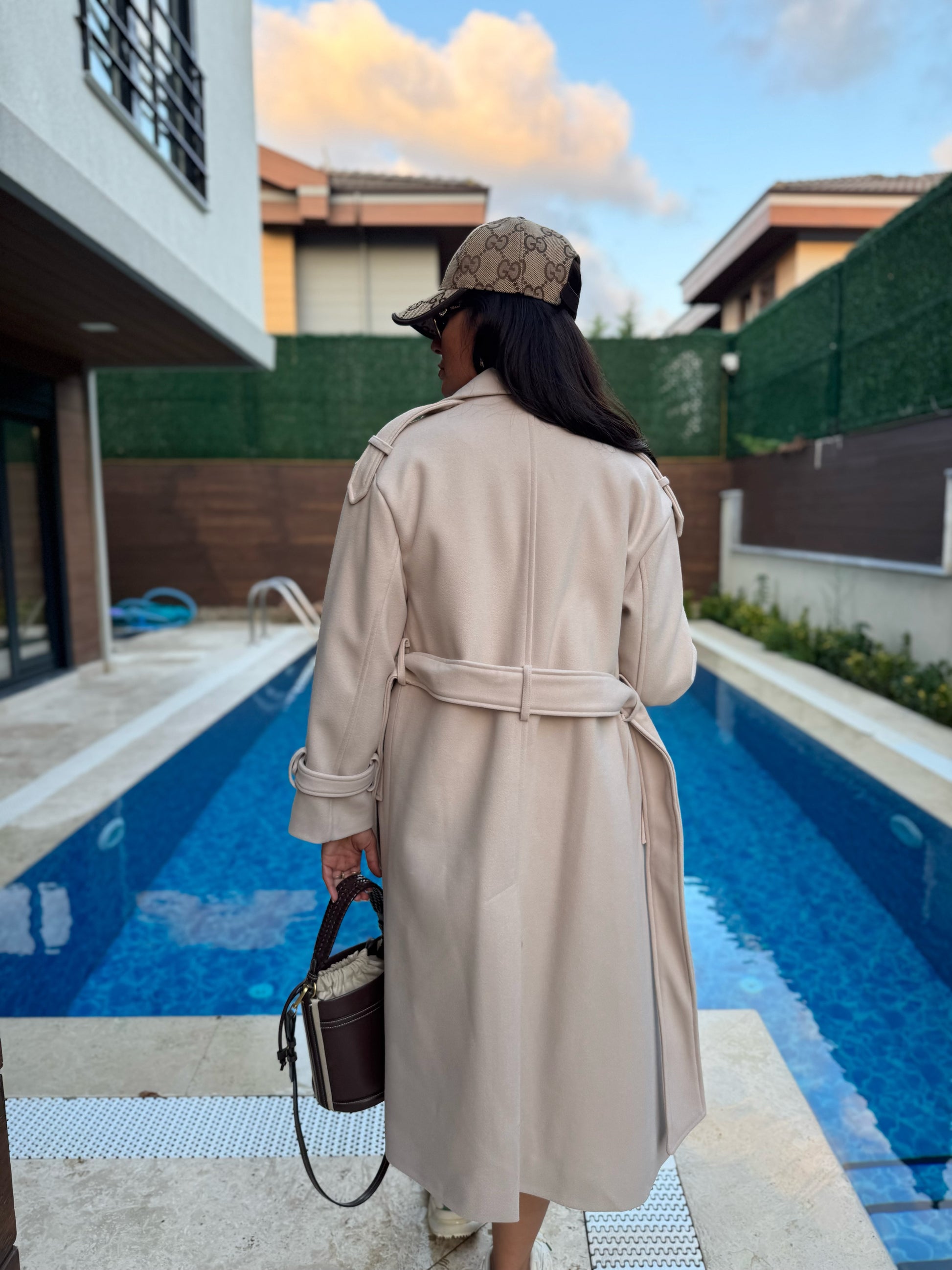 Kemer Detaylı Uzun Kaşe Kaban