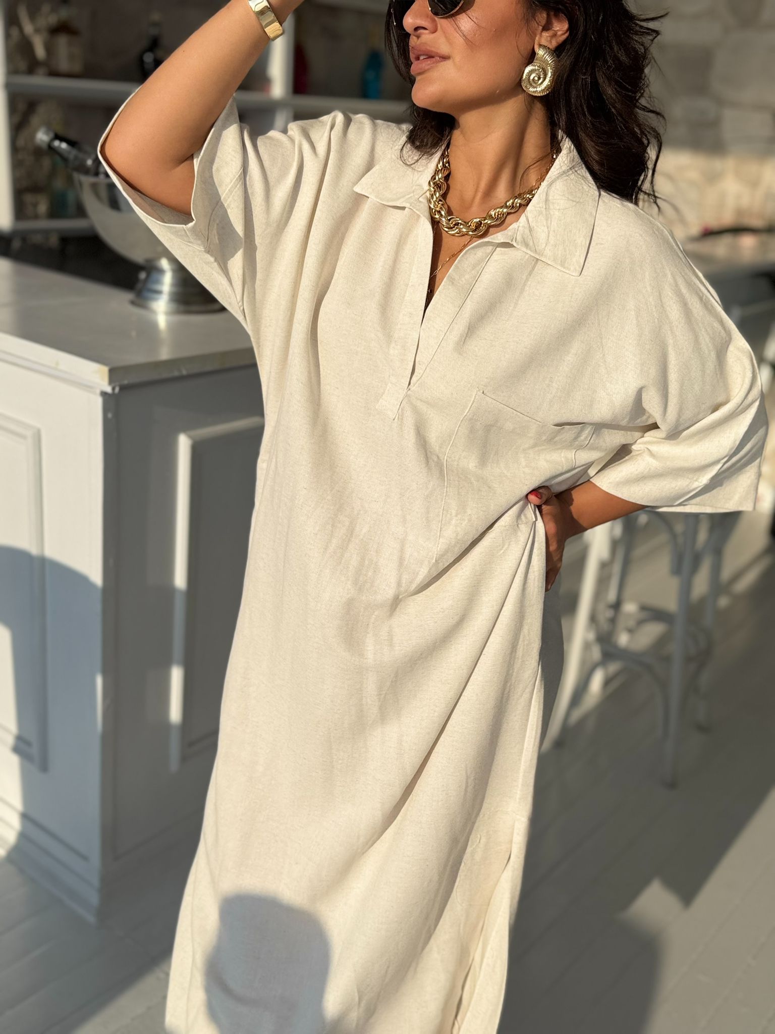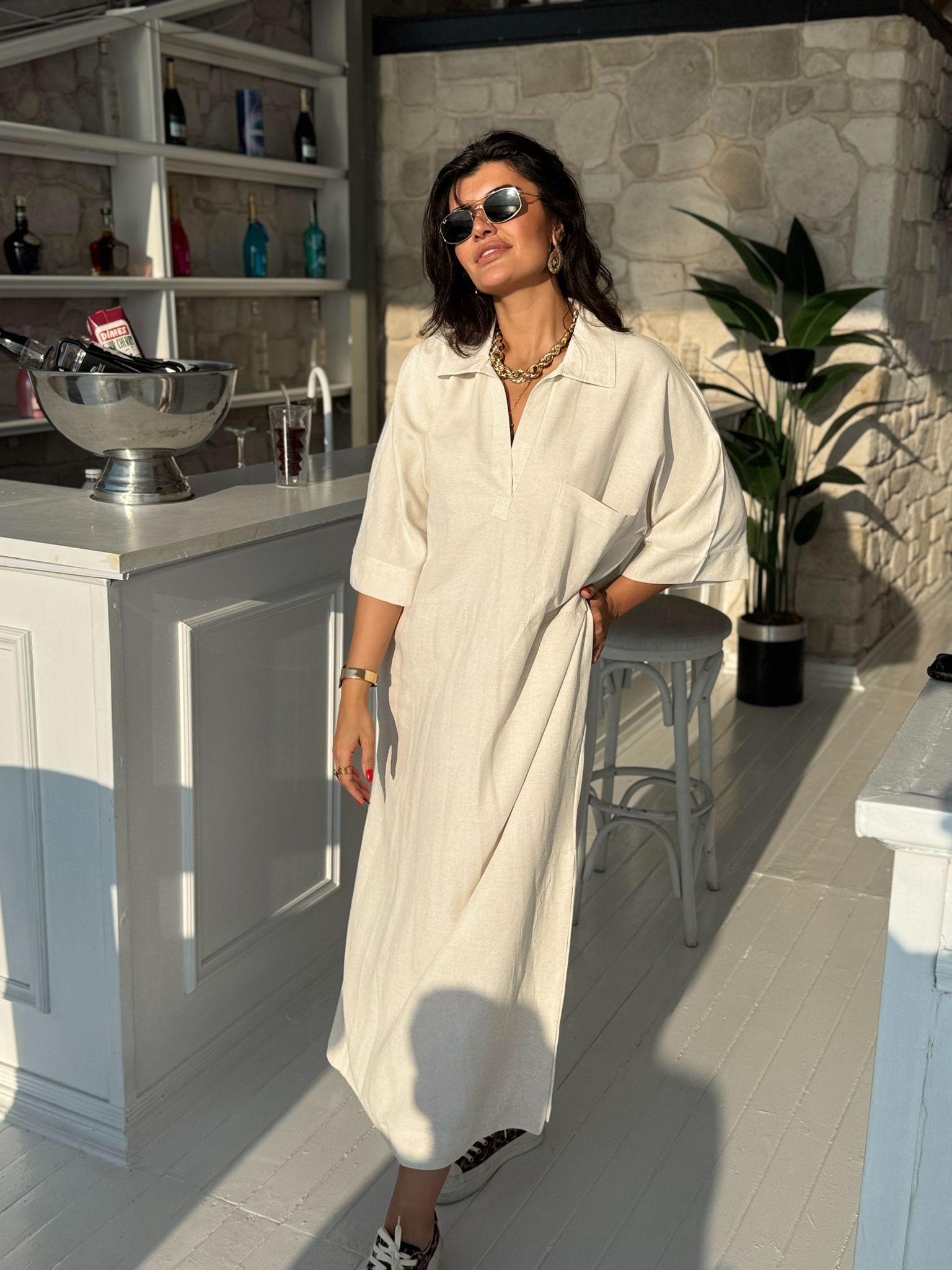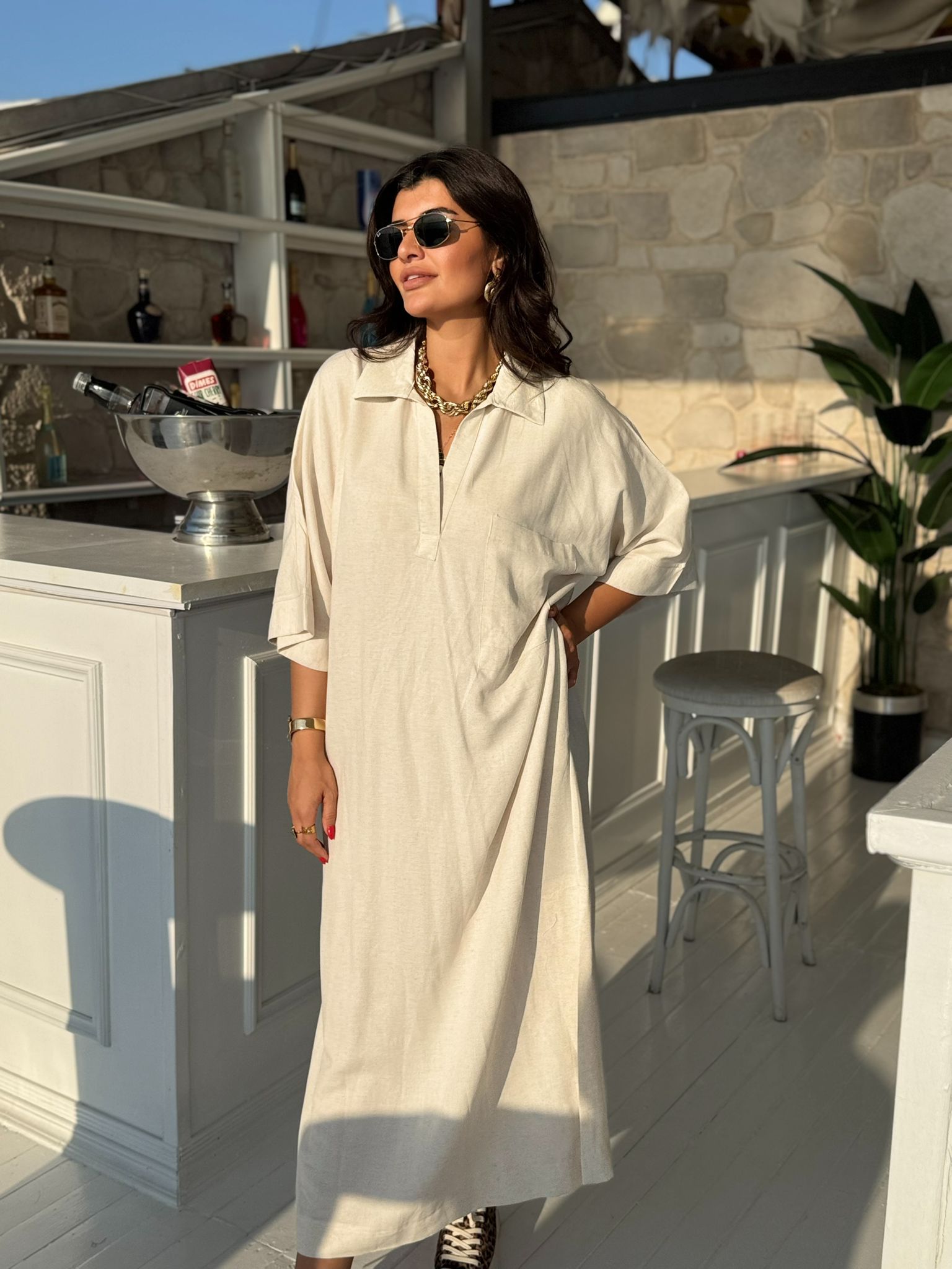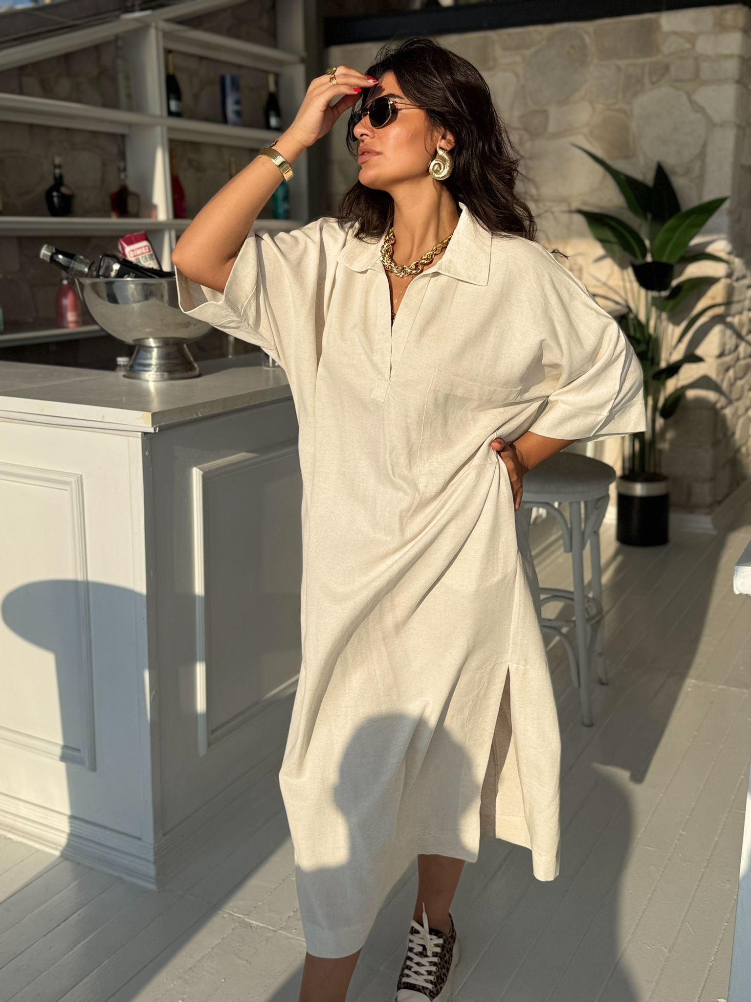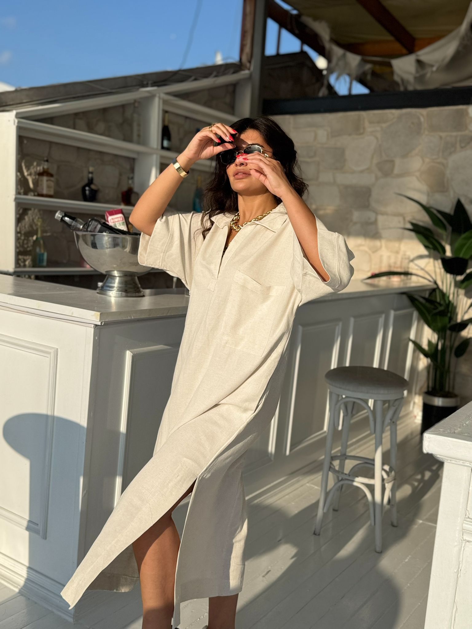 🌾 Doğal Zarafet: Keten Elbise | Bej
