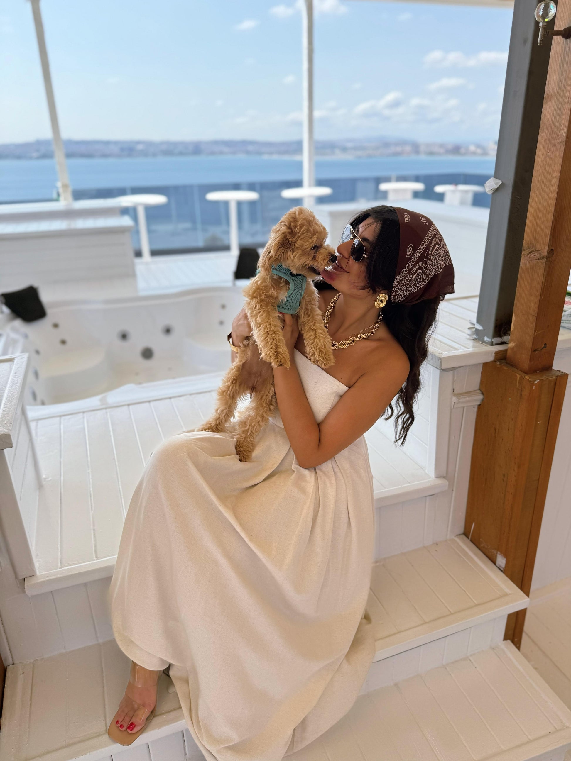 Beyazın sade ihtişamını yansıtan bu keten elbise, minimal çizgisiyle rafine bir stil sunar. Doğal dokusu ve özgür kesimiyle hem şıklık hem konfor sağlar. Temiz, yalın ve etkileyici bir görünüm arayan kadınların vazgeçilmezi.