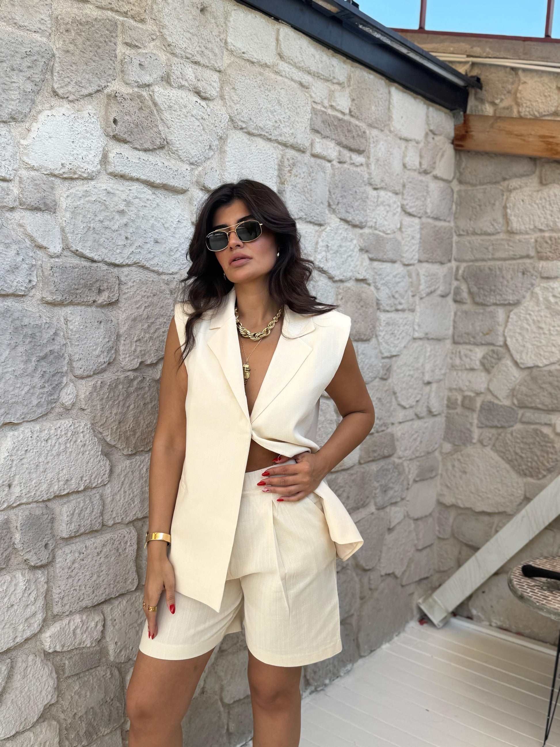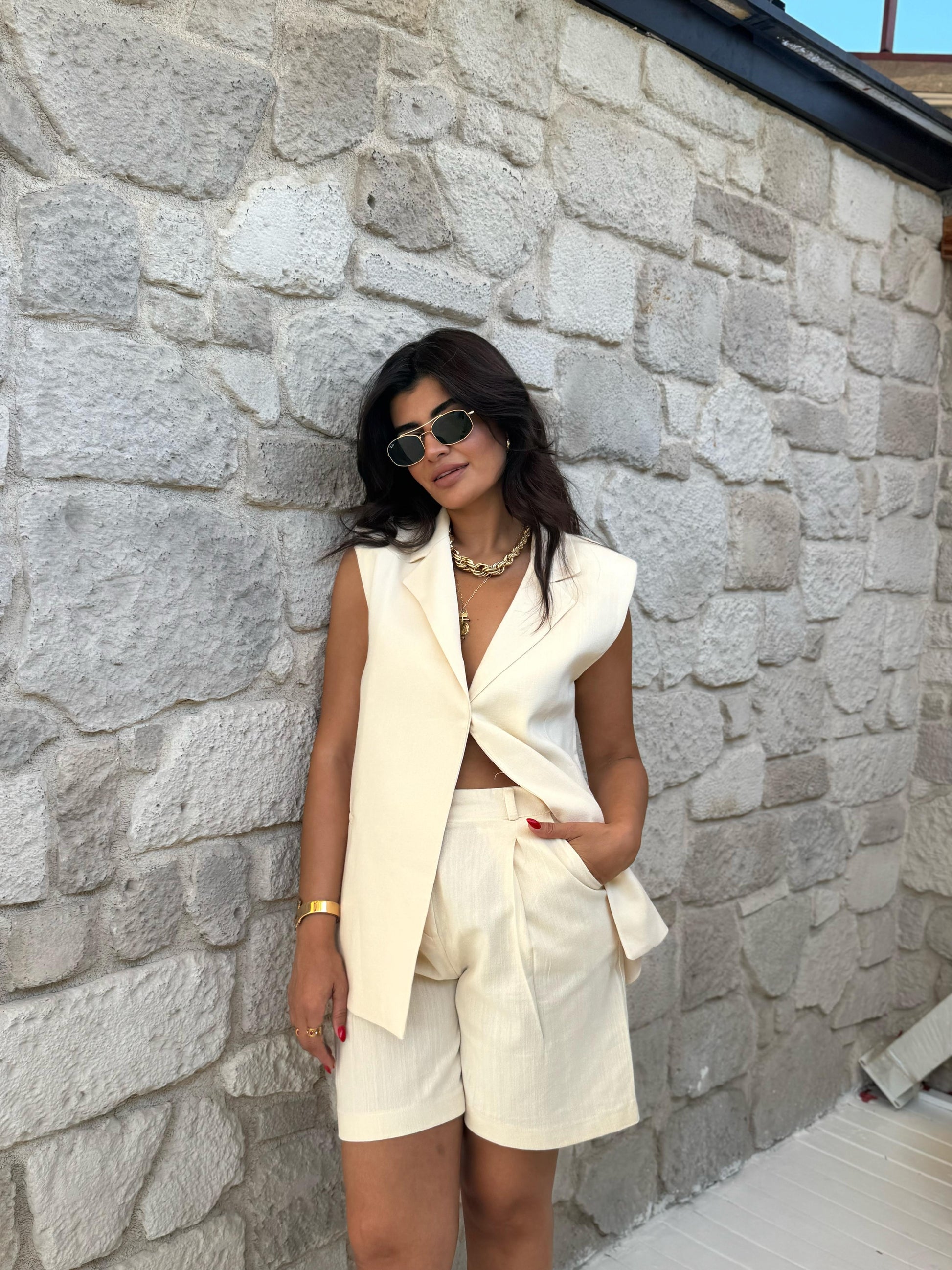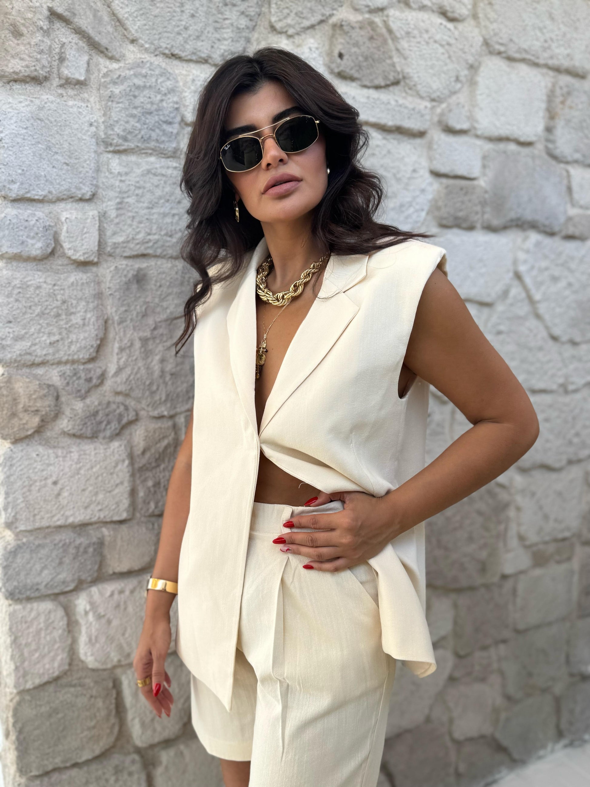 ✨ Zarifliğin ve doğal tonların kusursuz uyumu: Açık Bej Keten Takım