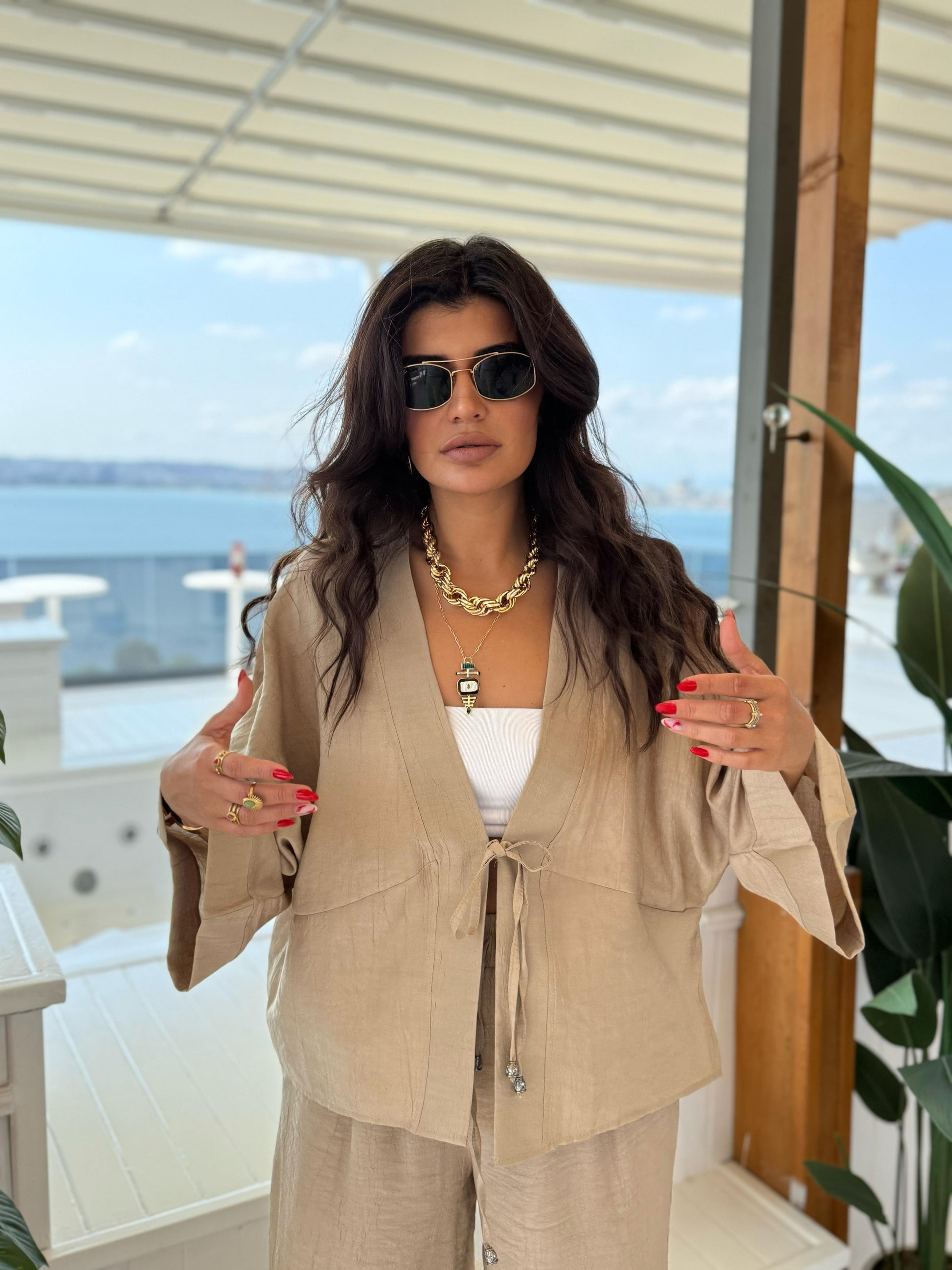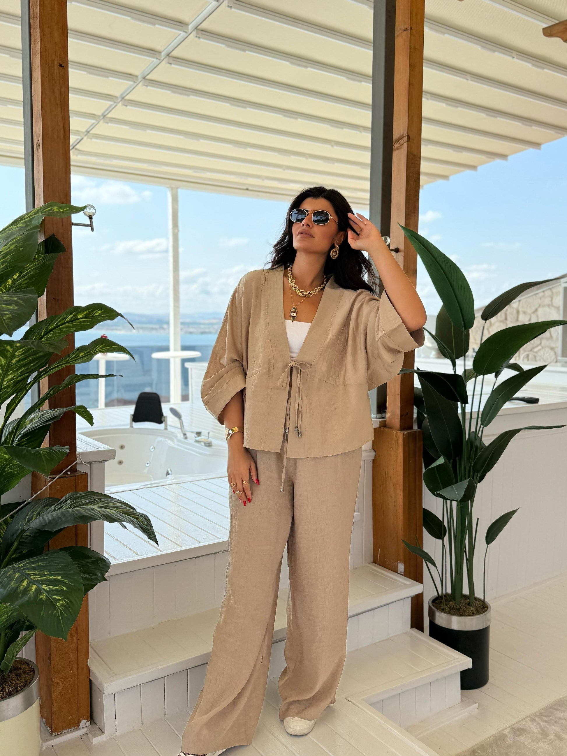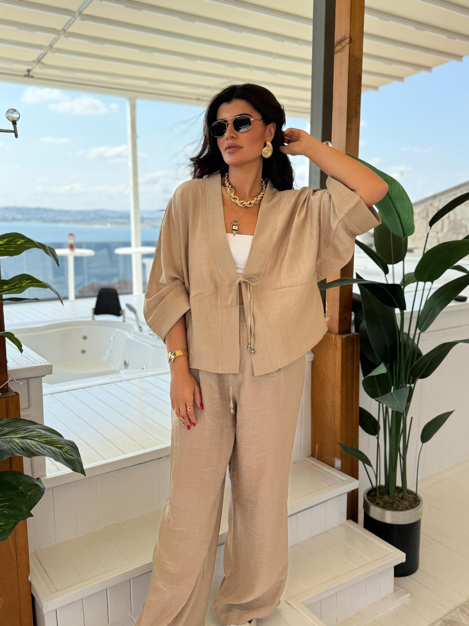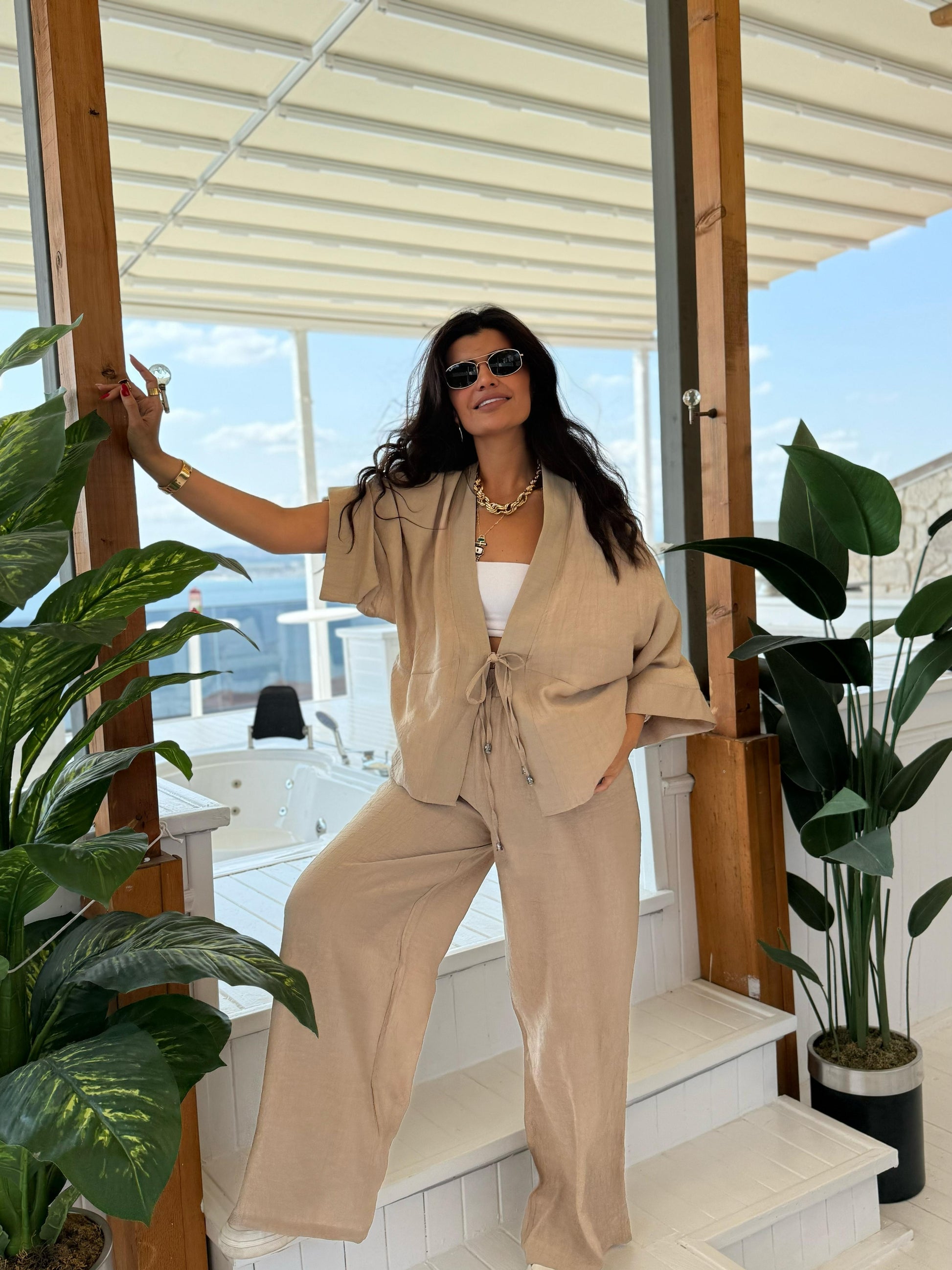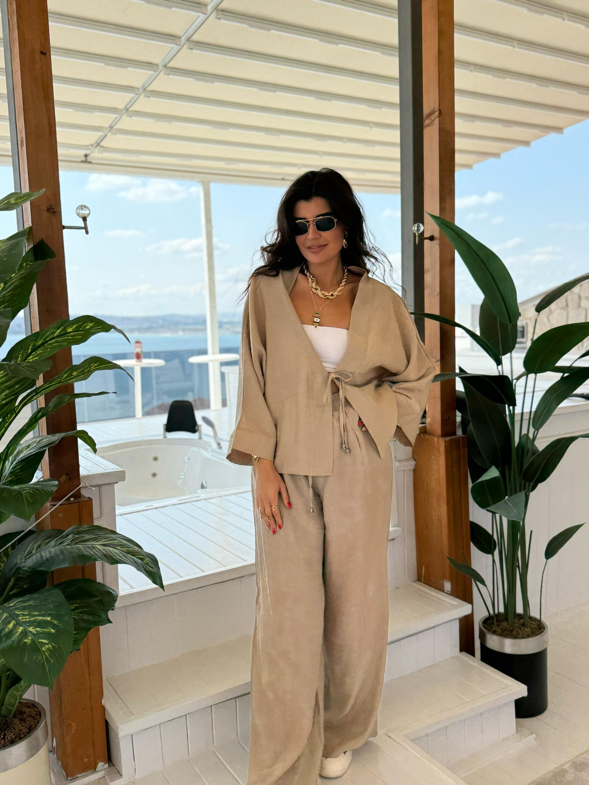 ✨ Saf doğallıkla gelen zarafet: Bej Kırışık Takım
