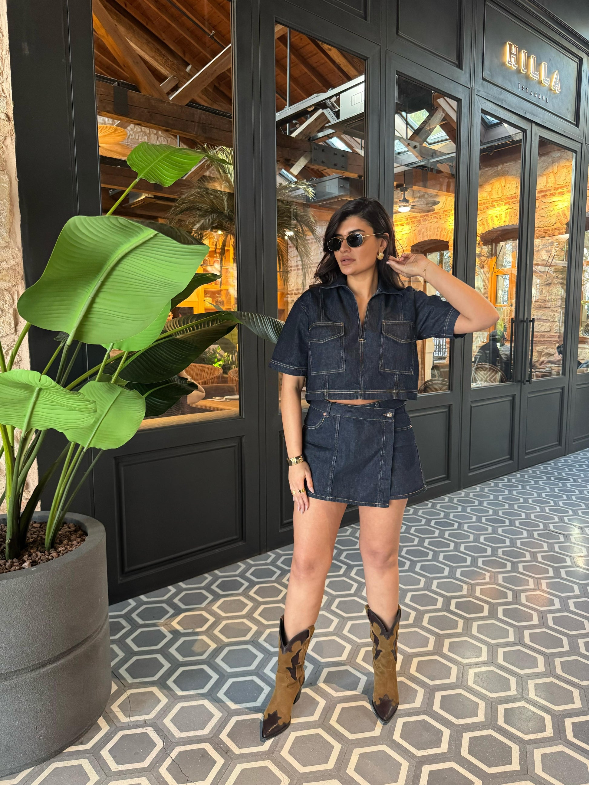 Lacivert tonlu denim takımıyla güçlü, havalı ve özgüvenli bir stil yakala. Tükenmiş olması, favori olduğunu kanıtlıyor. Hem ayrı ayrı hem de takım olarak kullanabileceğin bir joker.