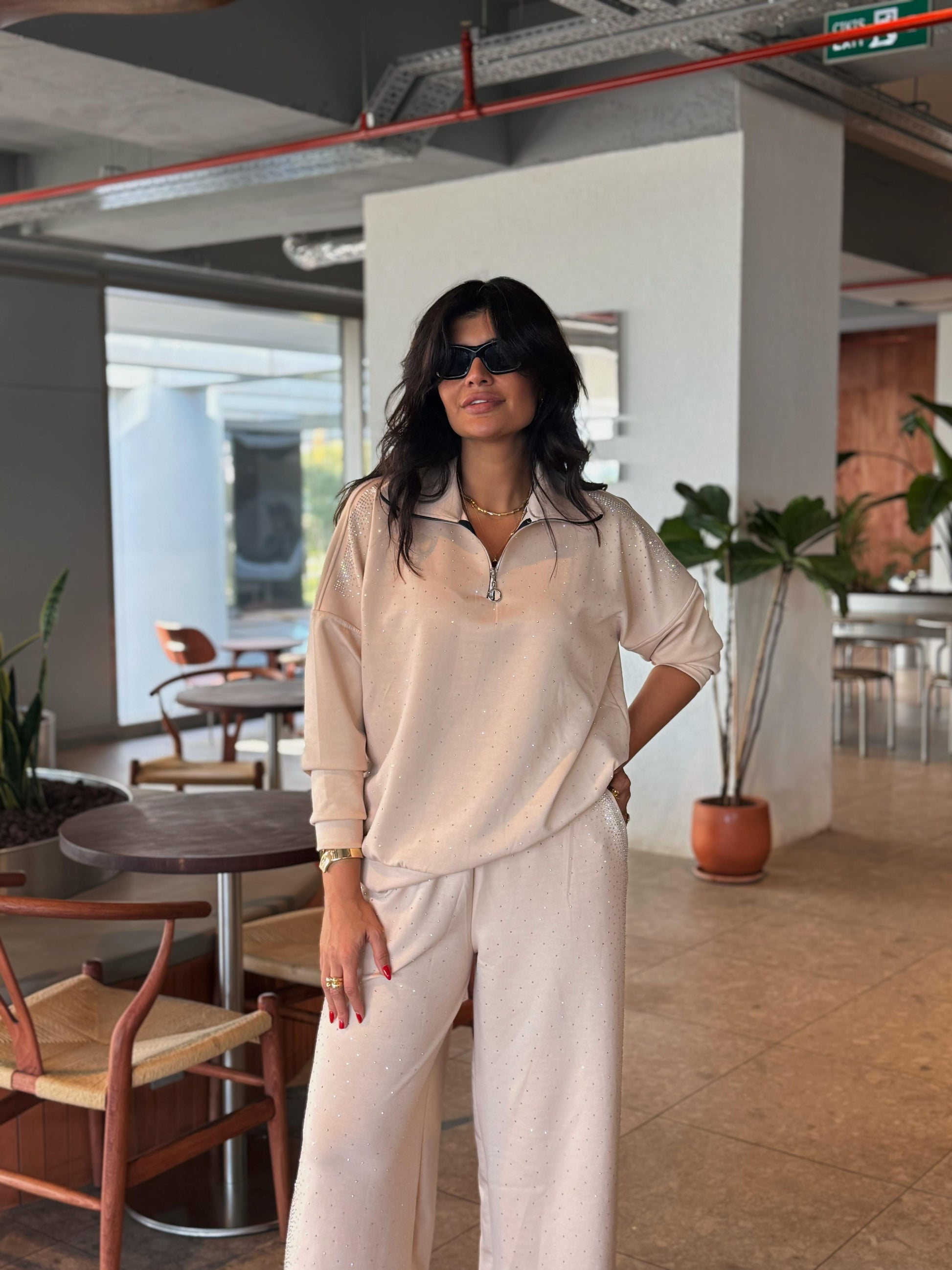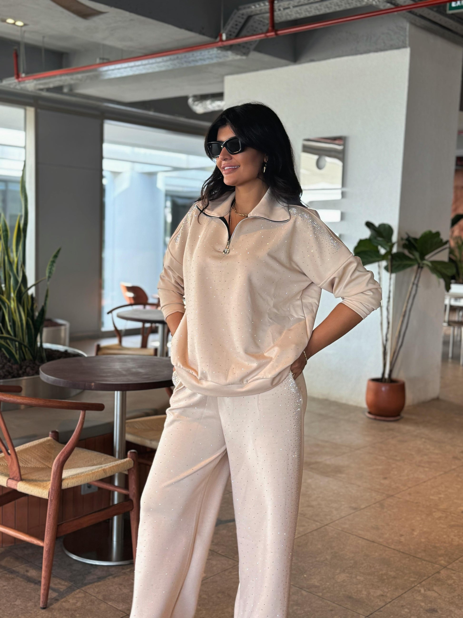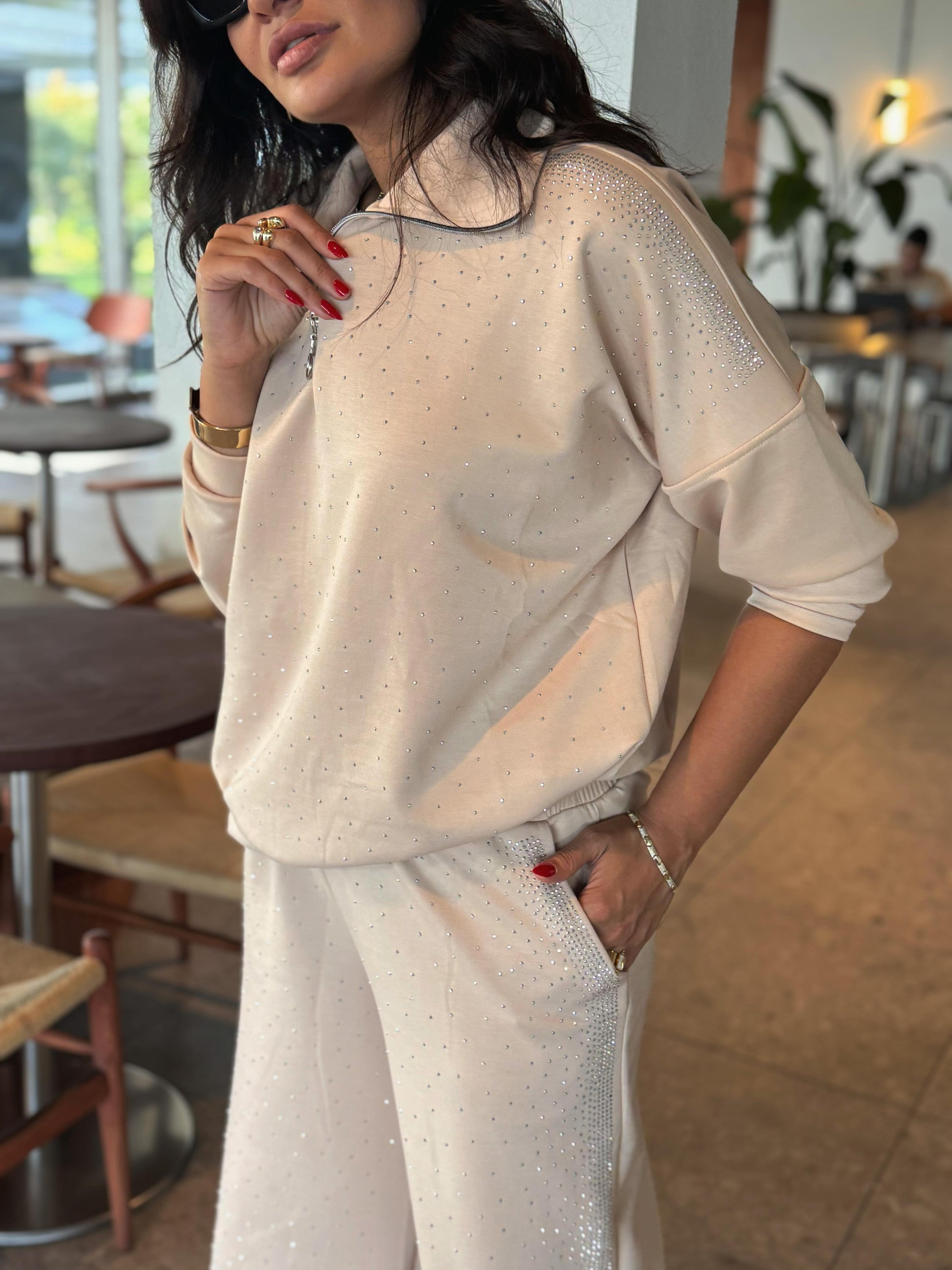 🤍 Oysh Modal Kumaş Taşlı Takım – Bej