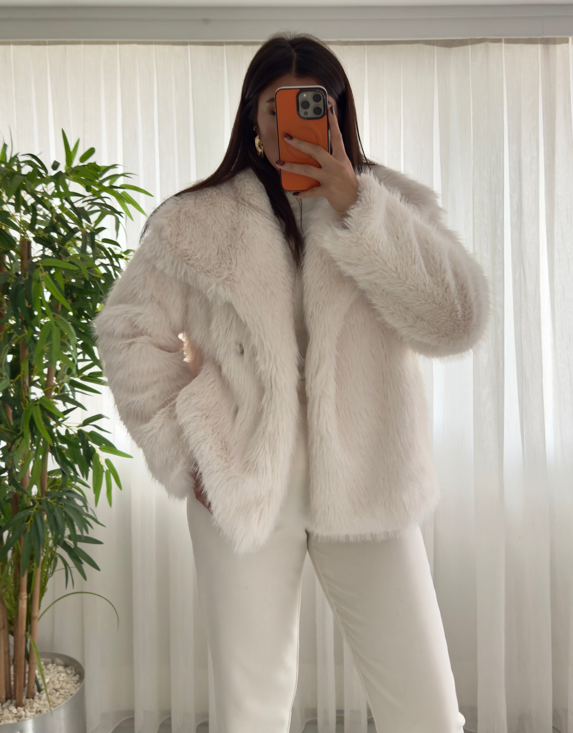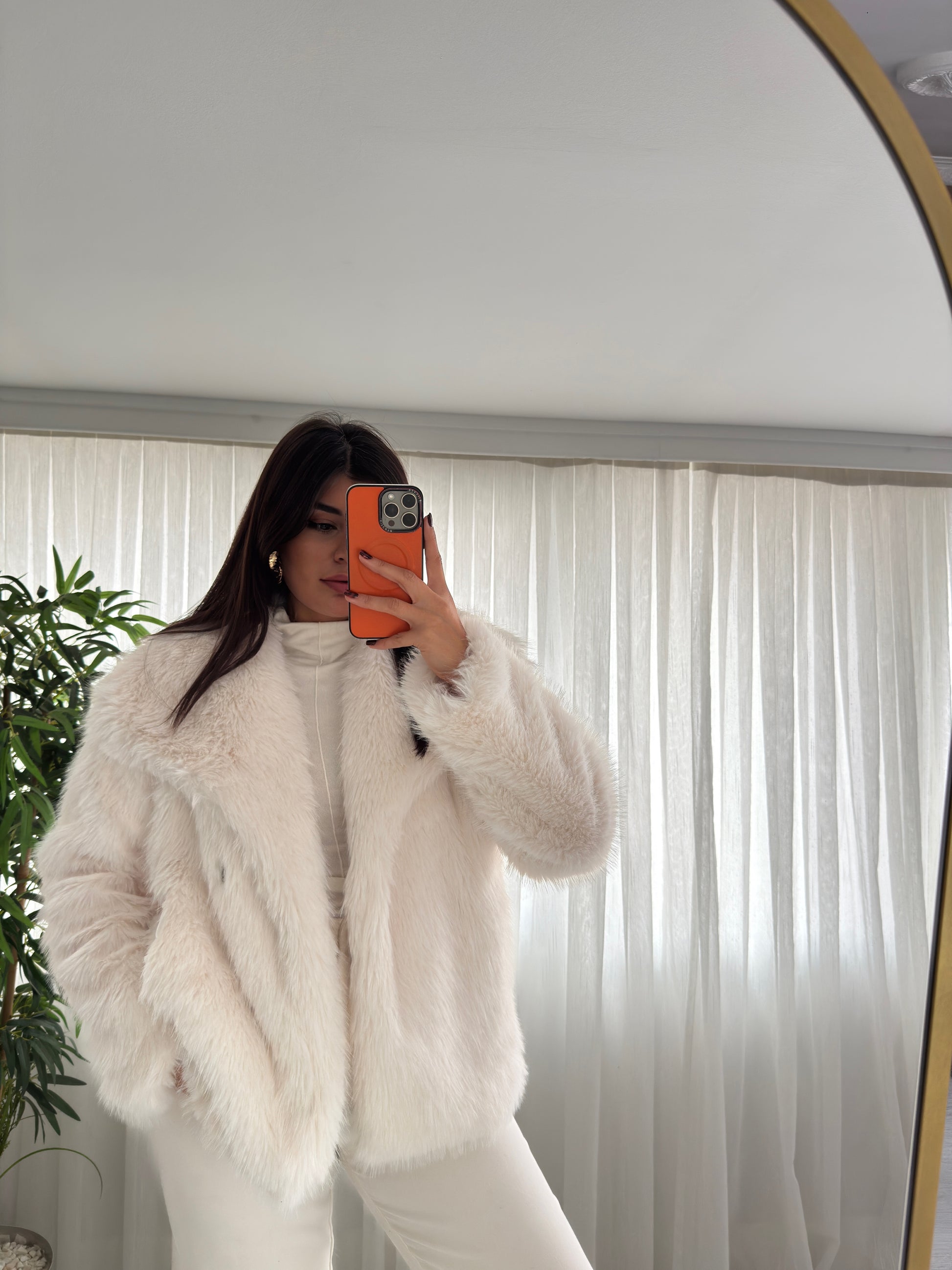 Premium Kalite Şal Yaka Kürk Bej