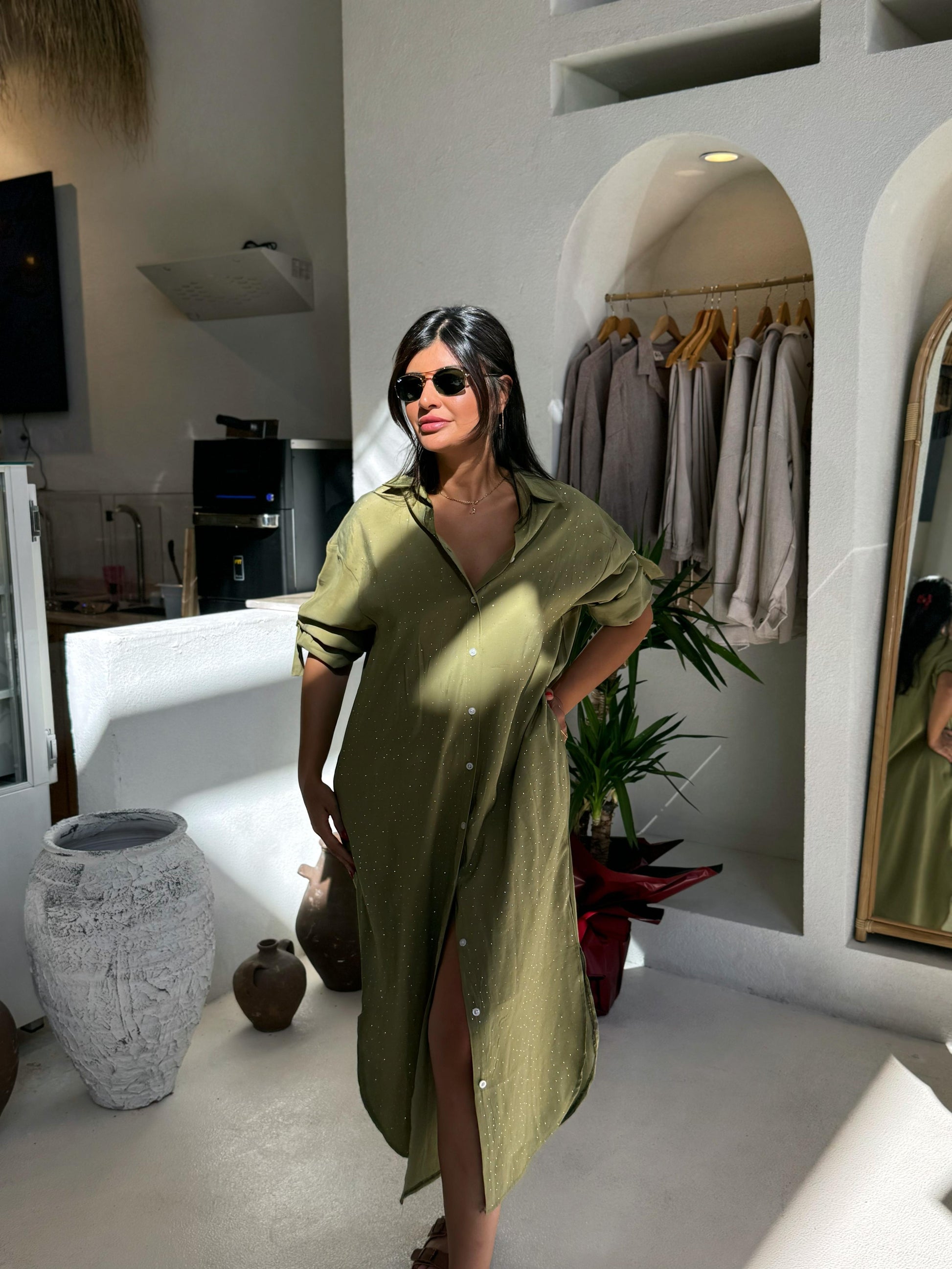 Tencel Kumaş Gömlek Elbise | Haki Yeşil