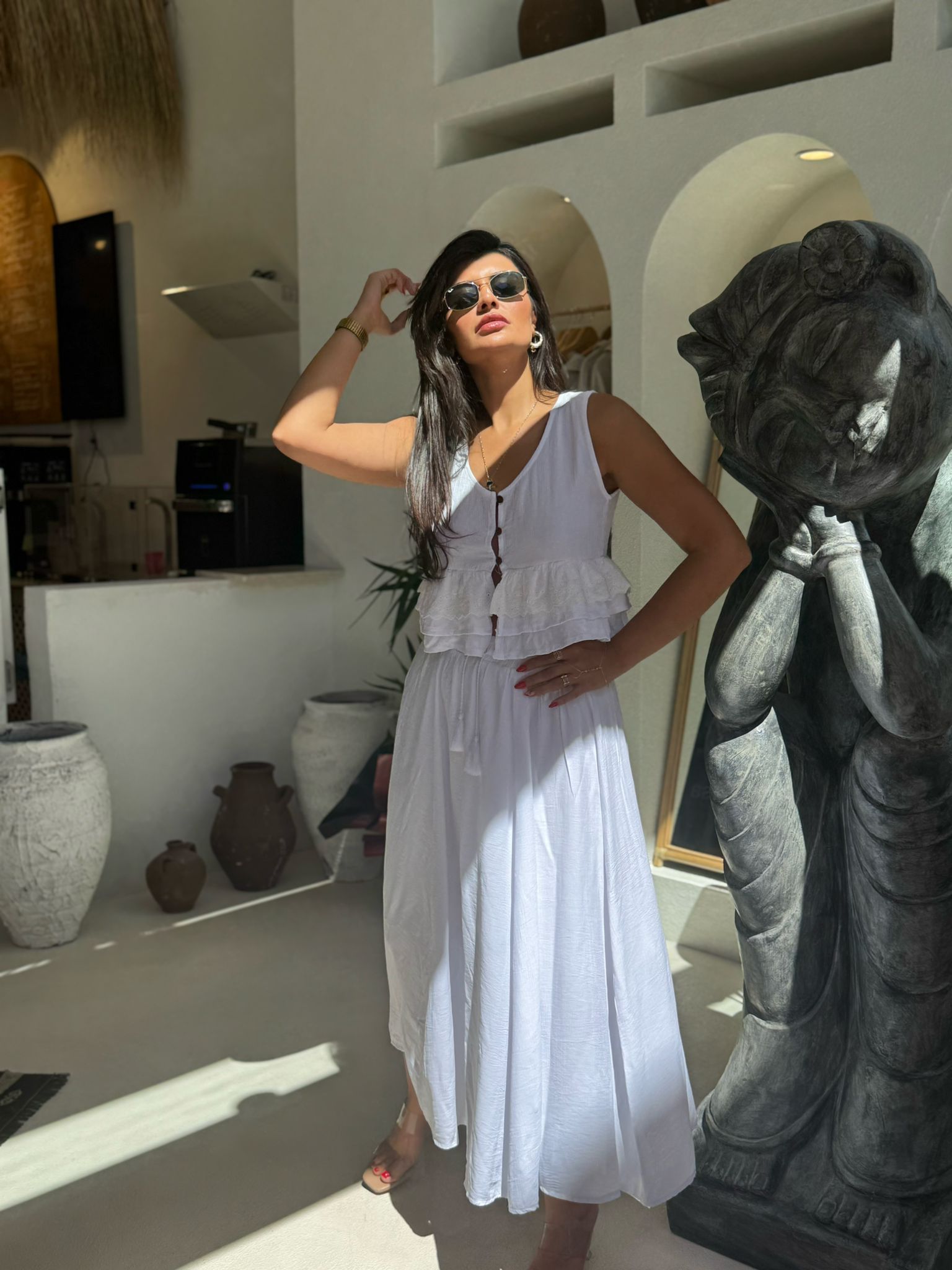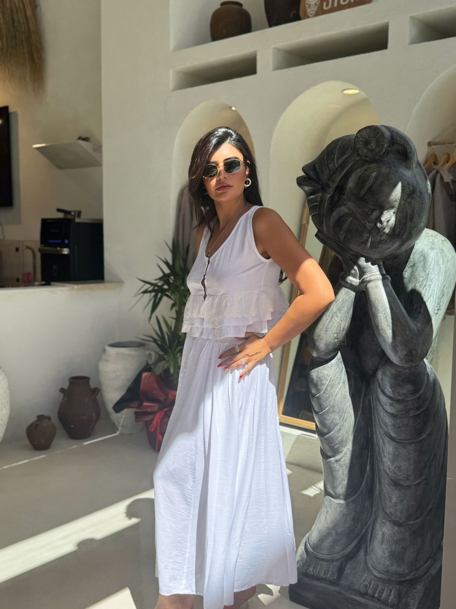 Kırışık dokusu ile hem özgür, hem iddialı bir tarz sunarken; beyazın sade zarafetiyle göz kamaştırıyor.
