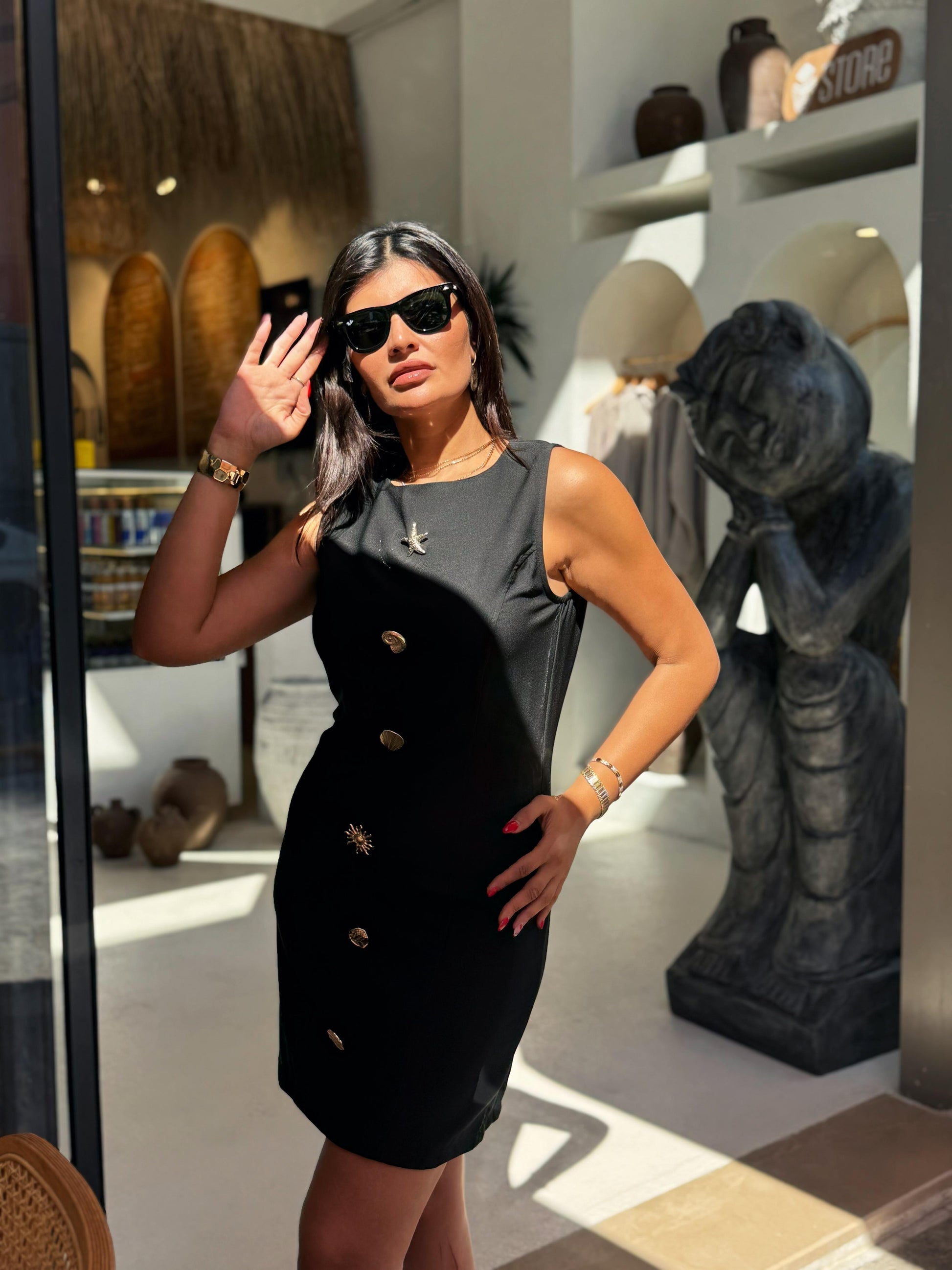 🔸 Şıklığın Simgesi: Gold Aksesuarlı Siyah Elbise